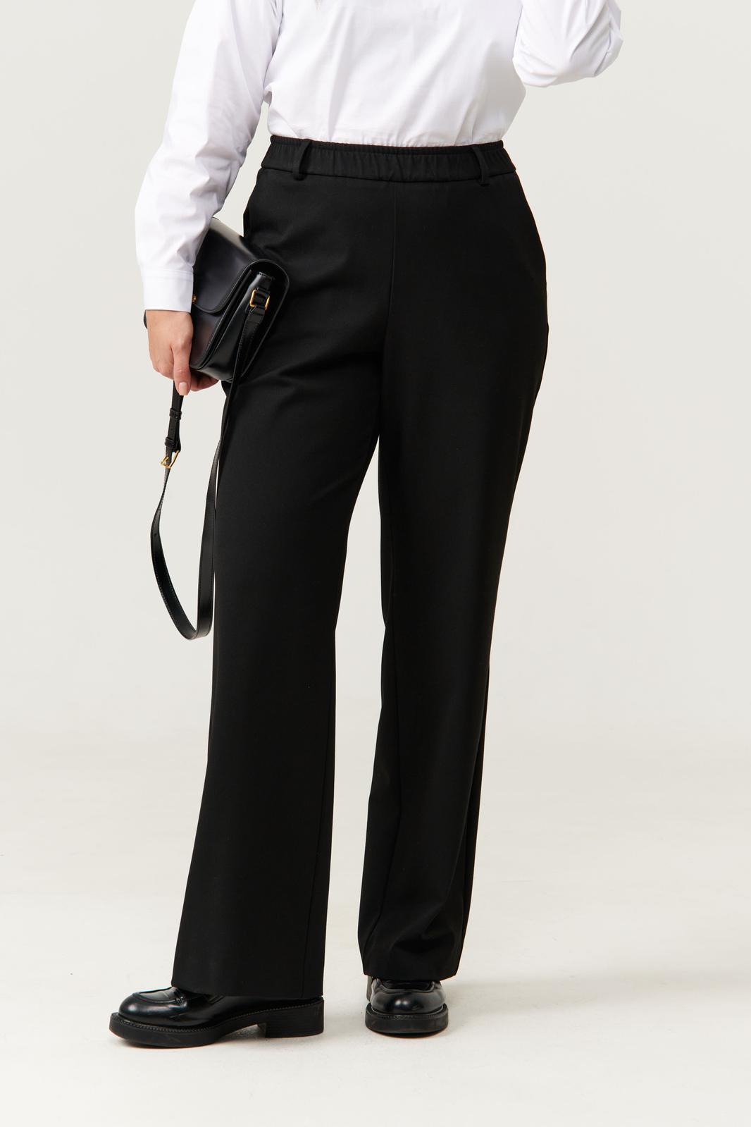 Модель прямого кроя создает элегантный и классический силуэт, гармонично подходящий для различных образов. Верхний срез оформлен притачным поясом с удобной вставкой на резинке, которая позволяет быстро и легко подгонять посадку. Для более стильного и практичного сочетания в пояс вставлены шлевки под ремень.