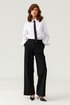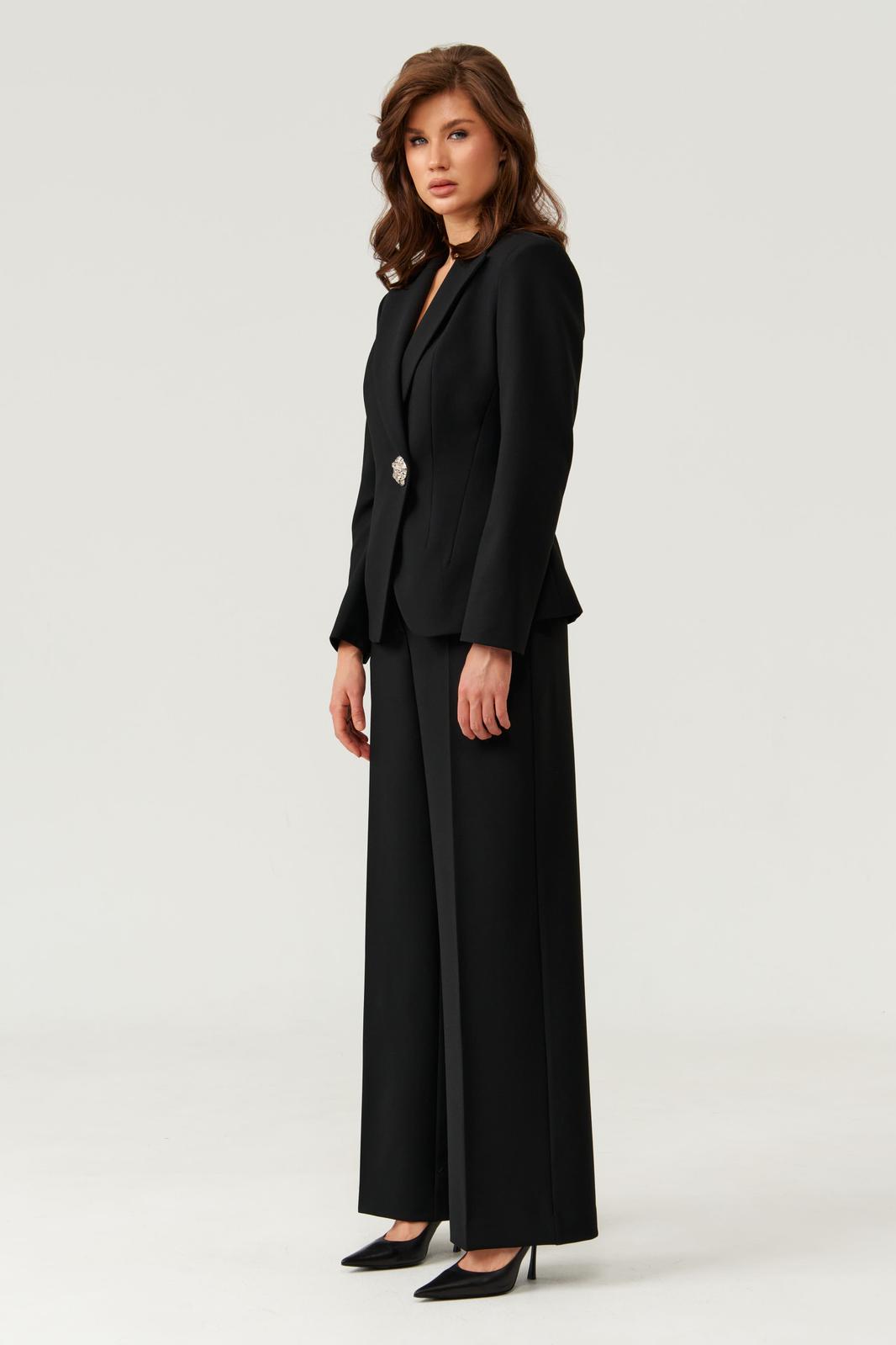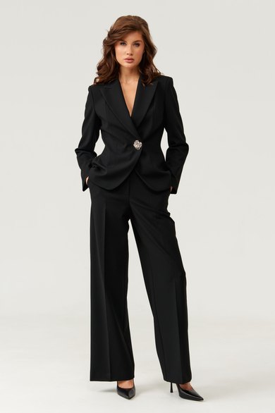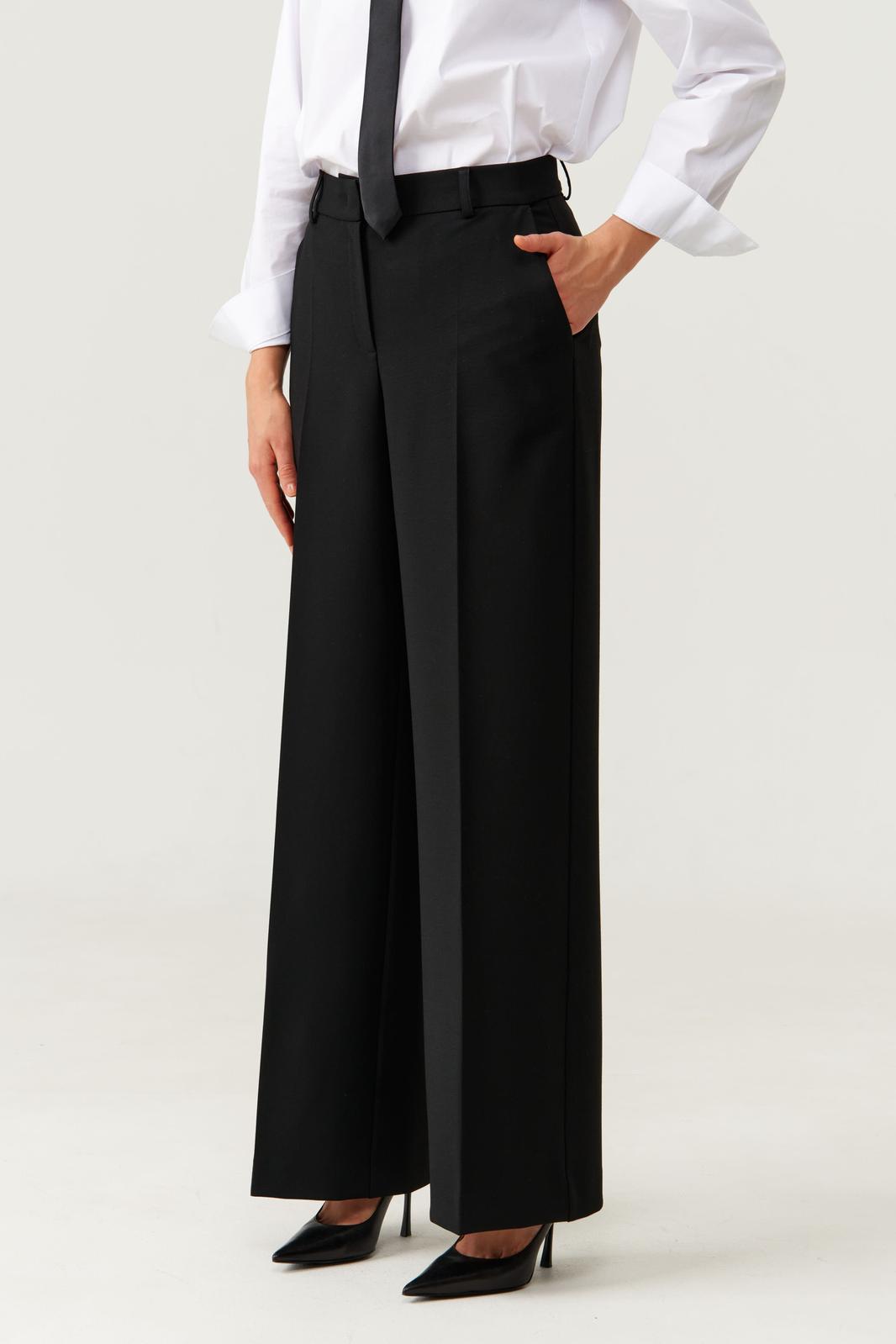 Эти женские брюки выполнены из костюмной поливискозной ткани чёрного цвета, идеально подходящей для повседневных образов. Их классический крой и нейтральный оттенок делают их универсальным элементом гардероба.