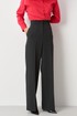 Верхний срез брюк обработан притачным поясом с застежкой на крючок и молнией в среднем шве, что обеспечивает надежную посадку и аккуратный внешний вид. Брюки оснащены шлевками, позволяющими дополнительно регулировать посадку по талии. Задняя часть украшена четырьмя талиевыми вытачками, которые создают хорошую посадку и подчеркивают фигуру.