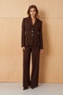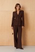 Эти женские брюки выполнены из костюмной поливискозной ткани шоколадного цвета, идеально подходящей для повседневных образов. Их классический крой и нейтральный оттенок делают их универсальным элементом гардероба.
