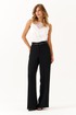 46 — Брюки: Высота посадки - 30см, Длина брюк без пояса - 108см, Длина по внутреннему шву - 83.5см, Ширина брючин сверху - 69.5см, Обхват брюк по низу - 62.5см, Ширина по бедрам - 52см, Ширина по талии - 39см;