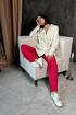 48 — Брюки: Высота посадки - 32см, Длина брюк без пояса - 110см, Длина по внутреннему шву - 84см, Ширина брючин сверху - 71см, Обхват брюк по низу - 59.5см, Ширина по бедрам - 53см, Ширина по талии - 38.5см;