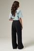 44 — Брюки: Высота посадки - 28см, Длина брюк с поясом - 108см, Длина по внутреннему шву - 79см, Ширина брючин сверху - 61см, Обхват брюк по низу - 59см, Ширина по бедрам - 51см, Ширина по талии - 33см;