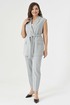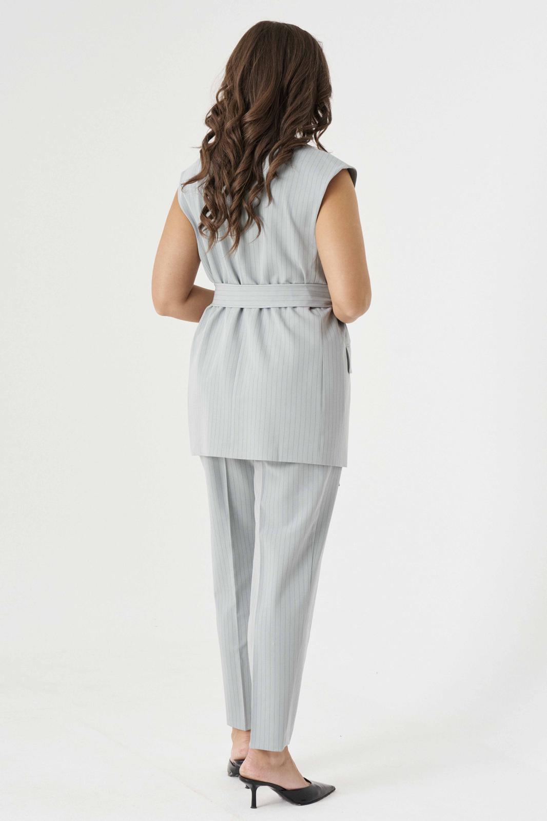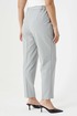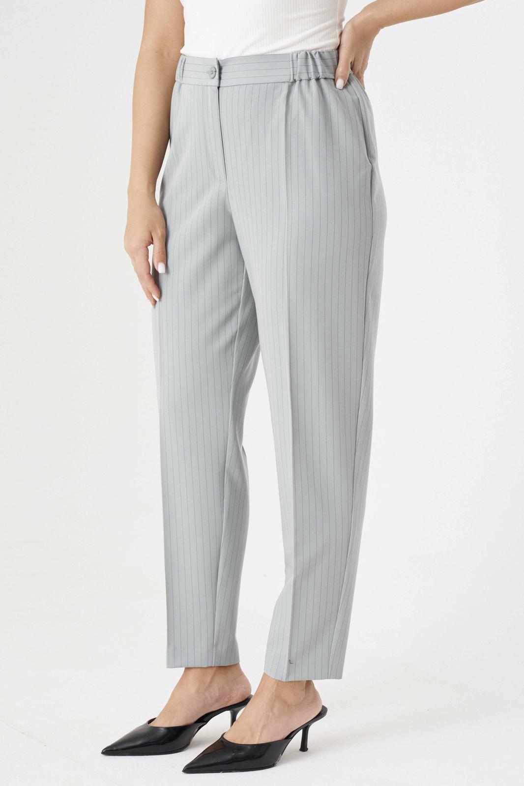 Брюки женские из смесовой ткани для повседневной носки, слегка зауженные к низу. Верхний срез брюк обработан притачным поясом, по боковым частям брюк имеется вставка на резинке. Застежка в поясе на одну обметанную петлю и одну пуговицу, а также застежка-молния в среднем шве брюк. Отличный вариант брюк, которые будут гармонично смотреться под любые образы.