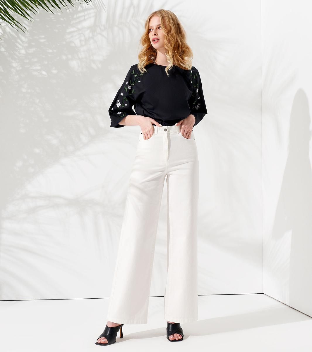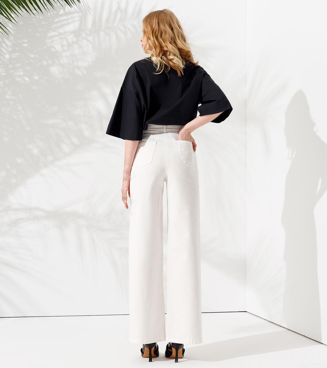 Брюки клеш женские, станут отличной базой для ваших расслабленных повседневных и стильных офисных образов. Благодаря простому крою и высокой посадке брюки casual универсальны. Их можно сочетать с вашими любимыми футболками и топами, с джемперами и толстовками. Дополнив брюки с высокой посадкой широким ремнем и рубашкой, у вас получится элегантный и нескучный офисный образ. Брюки женские широкие свободно садятся в области бедер и оставляют полную свободу движений. Штаны женские сшиты из приятной на ощупь ткани с 98% хлопка и 2% эластана. Материал хорошо пропускает воздух, поэтому вы будете комфортно себя чувствовать при любой погоде. Эта модель отлично подойдет для весны и лета. Брюки джинсы женские можно носить под пояс. Модель будет хорошо сочетаться и с заправленным, и с выпущенным верхом.