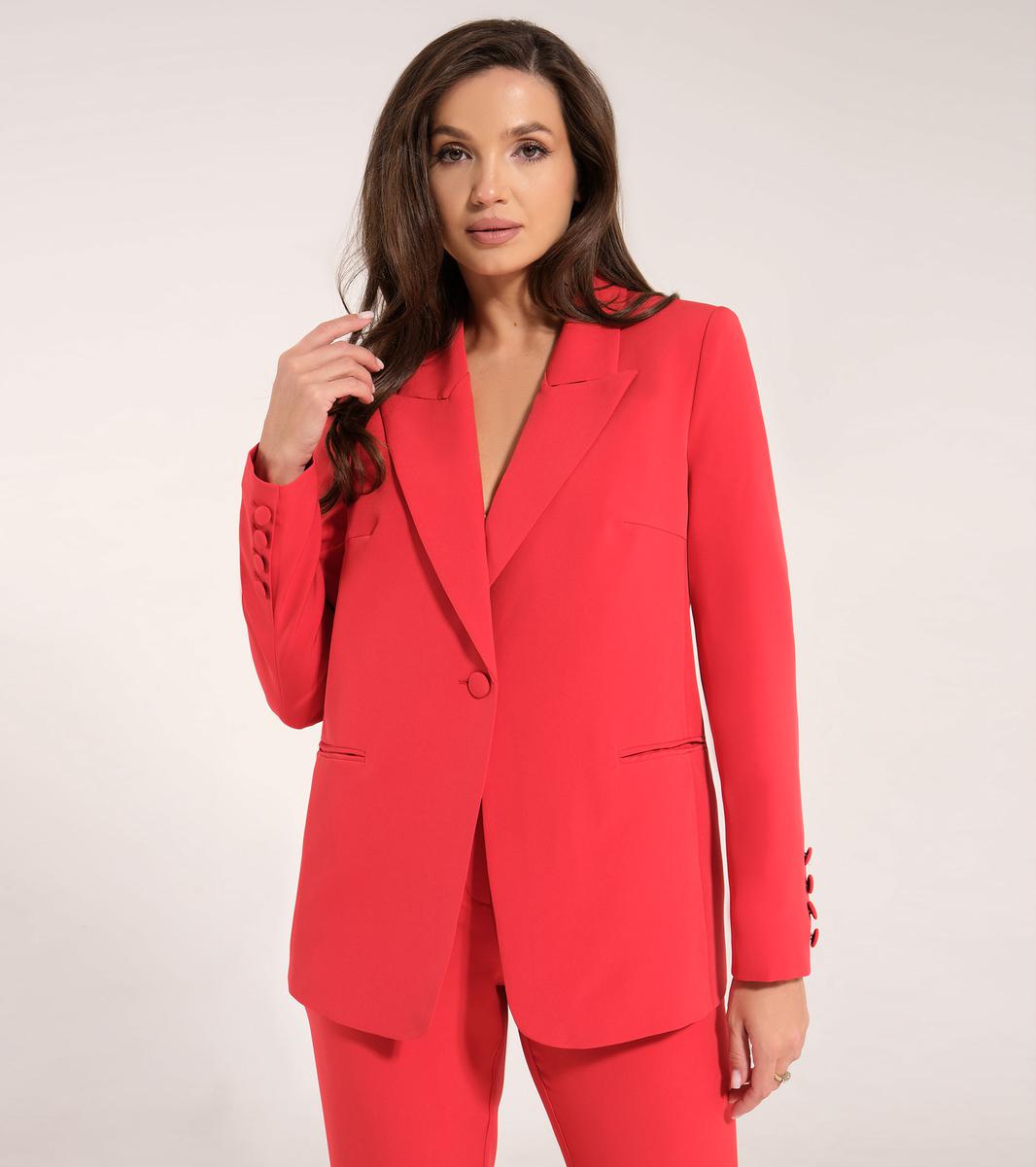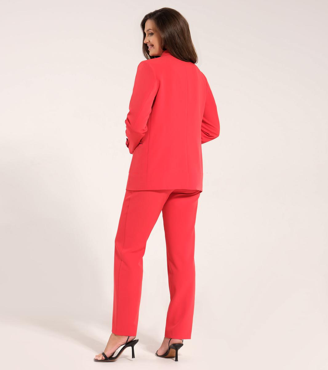 44 — Жакет: Длина изделия - 68см, Длина рукава - 62см, Ширина плеча - 11.5см, Ширина по бедрам - 51см, Ширина по груди - 50см, Ширина рукава - 18.2см; Брюки: Высота посадки - 27см, Длина брюк без пояса - 104см, Длина по внутреннему шву - 82см, Ширина брючин сверху - 63см, Обхват брюк по низу - 38.5см, Ширина по бедрам - 49см, Ширина по талии - 35.5см;