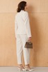 Женский жакет из поливискозной ткани в бежевом оттенке отлично подойдет для повседневной носки. Его полуприлегающий силуэт обеспечивает комфорт и стиль, а крою характерны криволинейная линия борта и аккуратная обработка. Передняя часть украшена рельефами и двумя карманами с листочкой, что дополнительно подчеркивает элегантность изделия. Застежка двубортная на обметанные петли и пуговицы придает жакету классический вид, в то время как воротник пиджачного типа добавляет изысканности. Спинка выполнена с средним швом и двумя вертикальными рельефами, идущими от плечевого шва до линии низа, что создает стройный силуэт. Длинные втачные рукава и отделочные строчки по воротнику и краю борта завершают дизайн, делая жакет стильным и аккуратным.