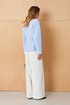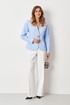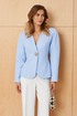 Женский жакет из смесовой ткани с высоким содержанием хлопка в голубом оттенке обладает элегантным и утонченным дизайном. Вырез горловины V-образной формы. Рукава втачные, длинные. Центральная бортовая застежка на одну кнопку с оригинальной кнопкой в виде ракушки создает акцент и добавляет изюминку образу. Передняя часть украшена двумя рельефами: один идет от плечевого шва до низа, другой — от проймы до линии низа, что подчеркивает стройность силуэта. Спинка выполнена с средним швом и двумя вертикальными рельефами, идущими от плечевого шва до низа, что создает структуру и объем. Жакет выполнен на подкладке для комфортной носки изделия и аккуратного вида. Этот жакет прекрасно подойдет для тех, кто ценит стиль и комфорт, сочетая в себе классические детали и современные акценты.