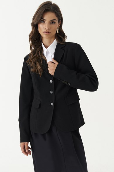 Жакет женский из поливискозной ткани для повседневной носки полуприлегающего силуэта. Жакет с центральной бортовой застежкой на обметанные петли и пуговицы. По переду имеются вертикальные рельефы, идущие от линии плеча до линии низа, а также имеются накладные карманы с клапаном. По спинке имеются вертикальные рельефы. Горловина обработана пиджачным воротником. Рукава длинные втачные. Очень красивый и стильный жакет, который вы сможете носить на разные мероприятия.
