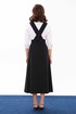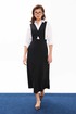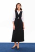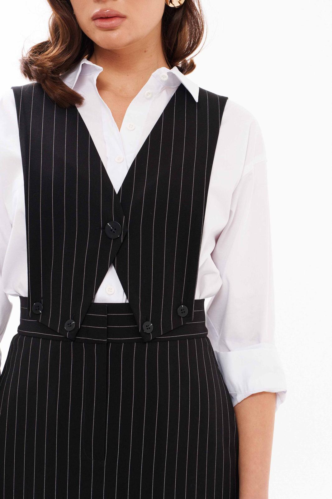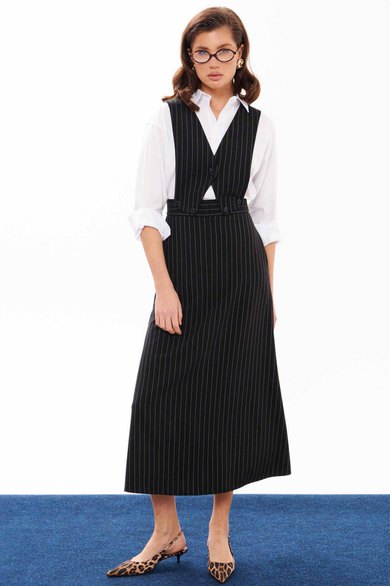 Сарафан женский из смесовой ткани для повседневной носки. Сарафан со съемным верхом. Жилет имеет центральную бортовую застежку на одну обметанную петлю и одну пуговицу. Жилет крепиться на пояс юбки с застежкой на обметанные петли и пуговицы. Юбка чуть расширена к низу. Верхний срез юбки обработан притачным поясом с застежкой на крючок, а также в среднем шве имеется застежка на тесьму-молнию. Заднее полотнище юбки имеет две талиевые вытачки. В боковых швах имеются потайные прорезные карманы. Данный сарафан очень многофункциональный, вы можете носить отдельно юбку и собирать стильные образы. Сарафан будет удобный и практичный в носке, а большое содержание вискозы подарит комфорт.