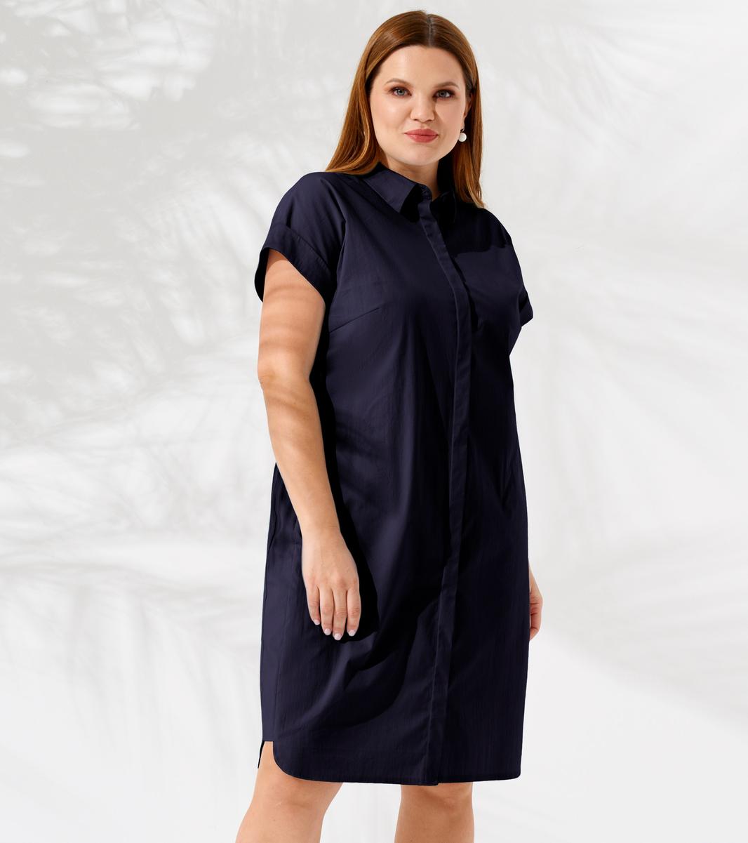 Женское платье рубашка – комфортная одежда для повседневной носки. В нем вы будете безупречно выглядеть на работе, прогулке, встрече с друзьями. Платье на пуговицах скроено с сорочечным воротником и короткими рукавами. Длина модели – до колена. Платье большого размера сшито в прямом силуэте, с нагрудными вытачками, благодаря чему идеально садится по фигуре и придает ей изящность. Вы можете заказать женское платье миди из трикотажа для создания стильных аутфитов. Оно отлично будет сочетаться с обувью в спортивном стиле и на танкетке.