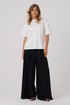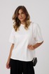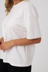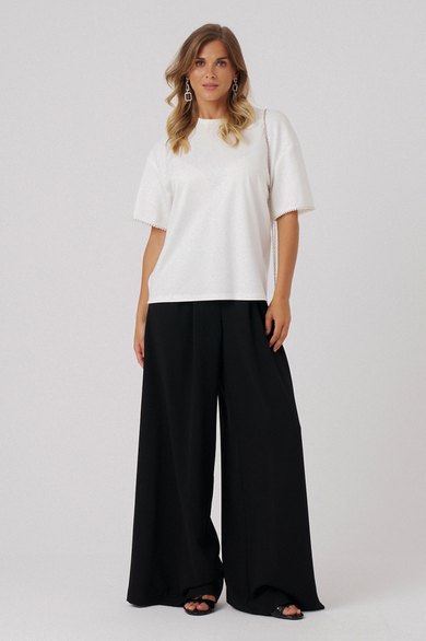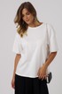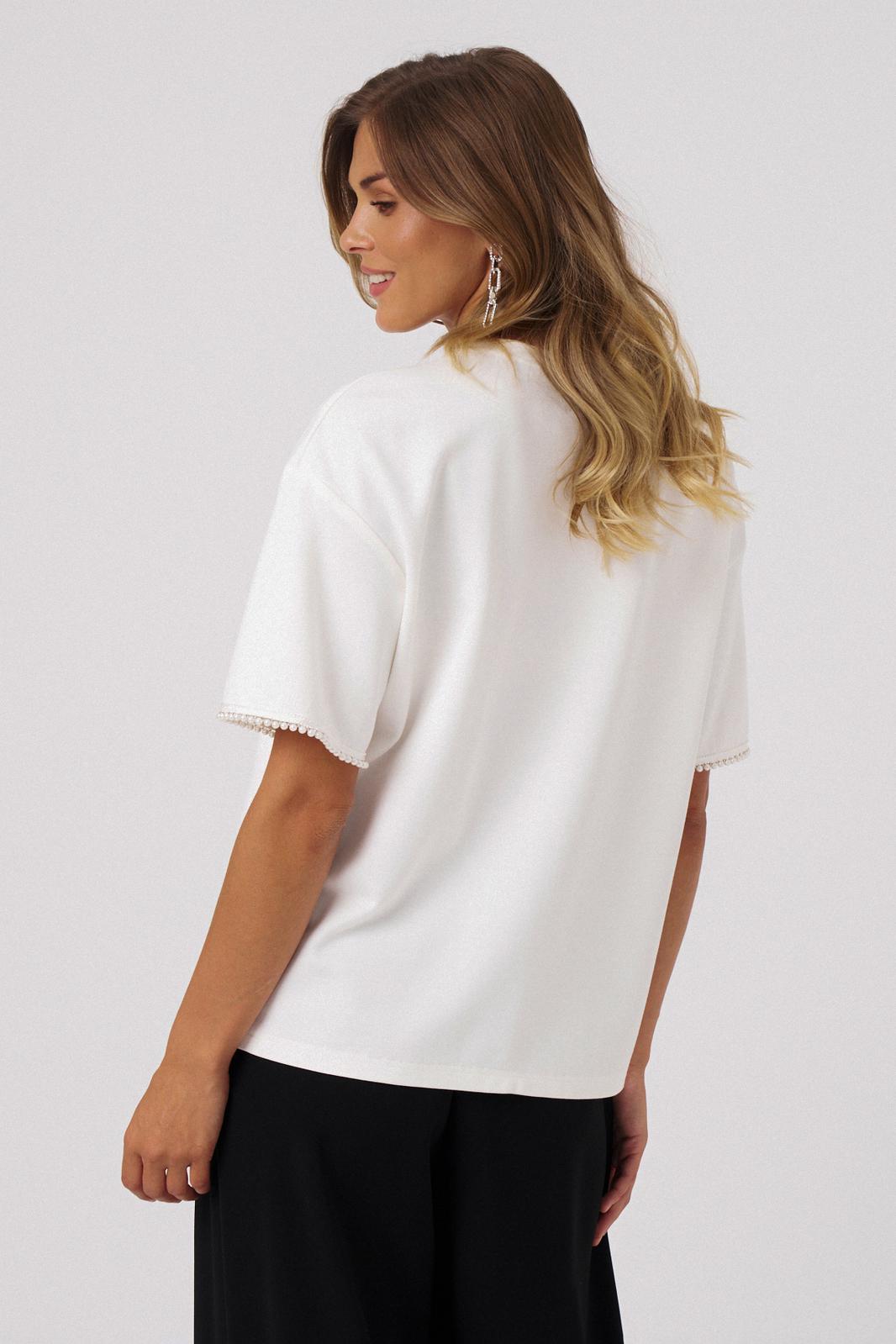 Женский джемпер молочного цвета из мягкого трикотажного полотна, созданный для комфортной повседневной носки. Модель характеризуется удобной посадкой и современным дизайном. Чуть расширенная горловина обеспечивает свободу движений и ощущение легкости, а немного опущенная линия плеча придает образу расслабленность и актуальность. Рукава втачные, длиной до локтя, низ рукава украшен декоративной тесьмой с бусинами, добавляющей изящный акцент. Этот джемпер станет прекрасным выбором для создания уютных и стильных повседневных образов.