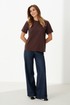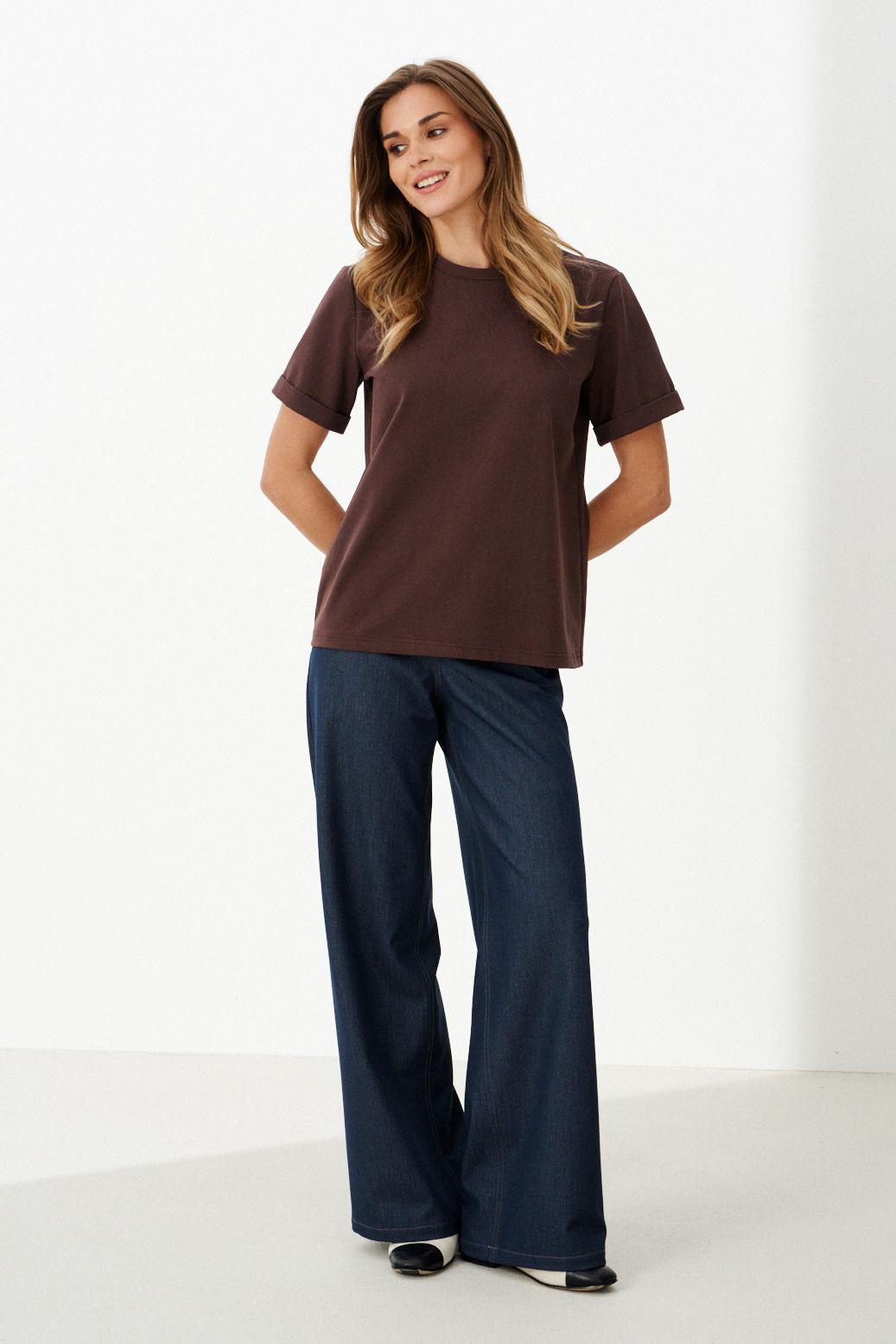 Рукав короткий, свободный. Горловина круглая, обработана притачной планочкой.джинсам. Прямой крой и дышащий материал делают её удобной и комфортной для повседневной носки, для поездок и для прогулок! Подойдёт как в офис, так и как элемент вечернего гардероба!
