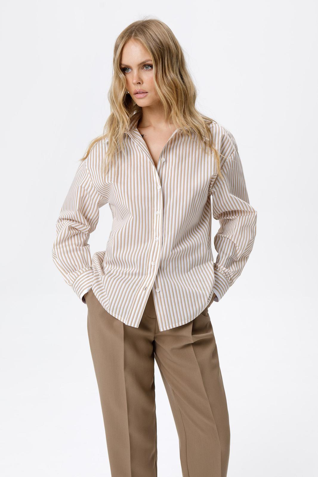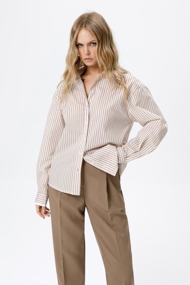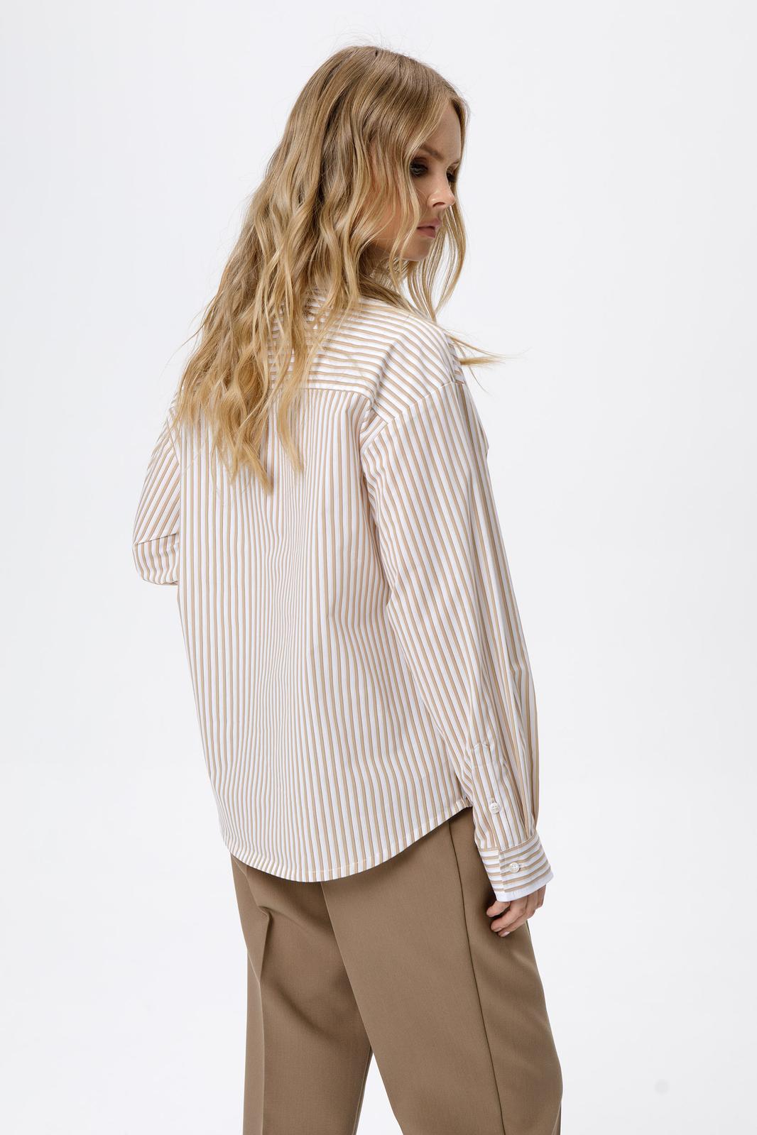 Хлопковая свободная рубашка в полоску с двойными воротниками и манжетами.