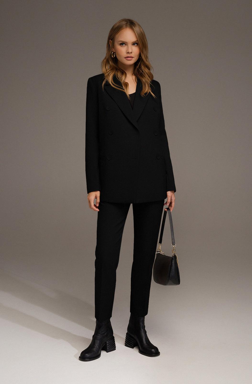 Классические укороченные брюки из текстильной ткани. Детали: брюки со средней посадкой, притачной пояс со шлевками, передние половины с небольшими мягкими складками и заутюженными стрелками, застежка на молнию и пуговицу, боковые карманы.