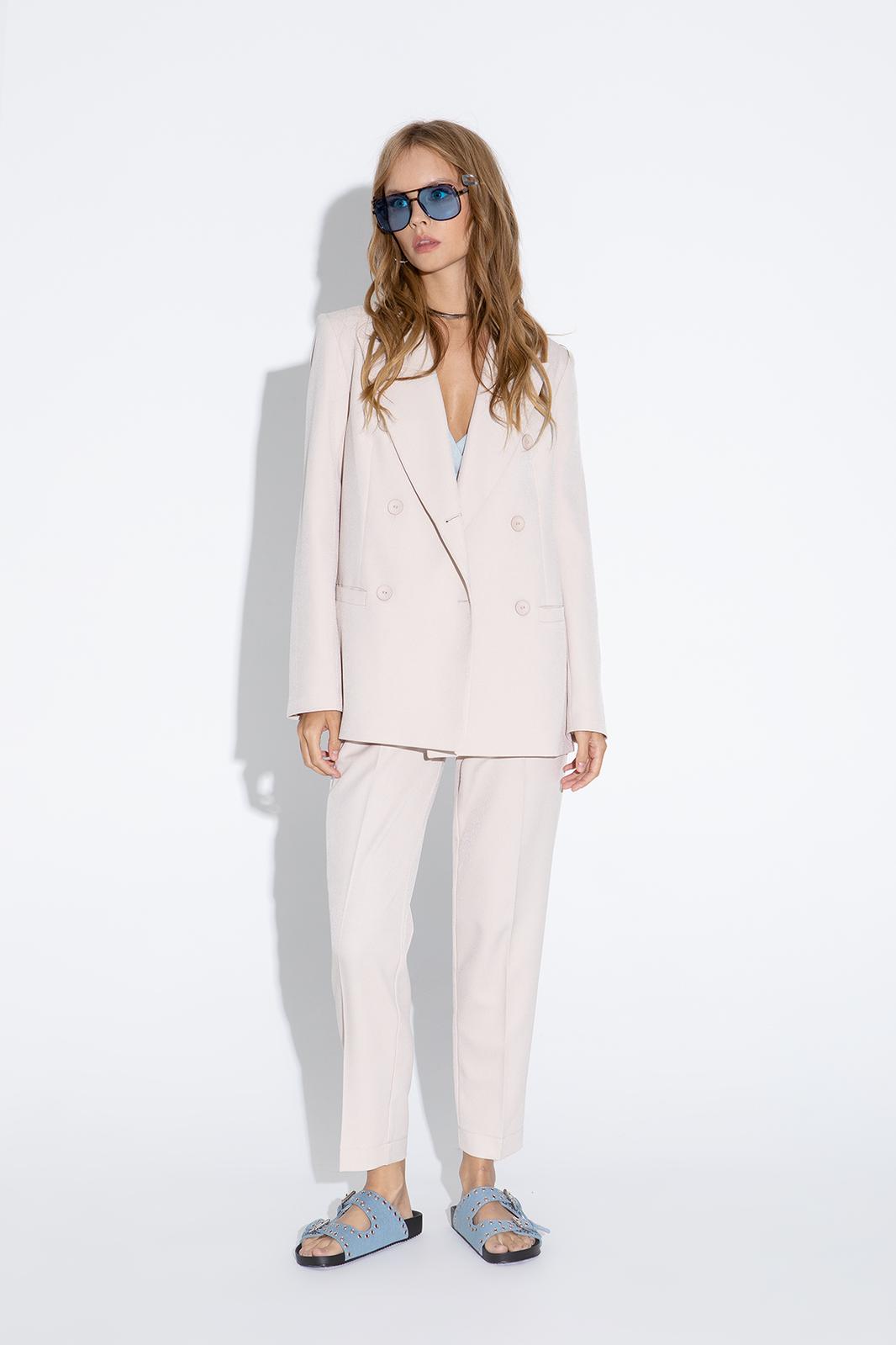 Классические укороченные брюки из текстильной ткани. Детали: брюки со средней посадкой, притачной пояс со шлевками, передние половины с небольшими мягкими складками и заутюженными стрелками, застежка на молнию и пуговицу, боковые карманы.