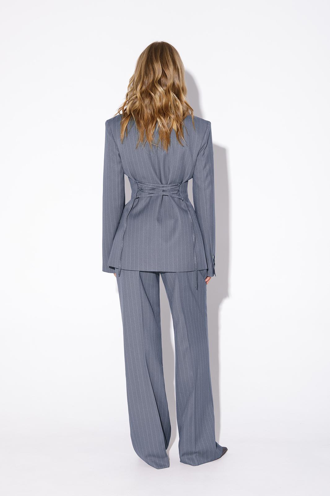 Жакет со шнуровкой из текстильной ткани в полоску. Детали: жакет полуприлегающего силуэта, расширенные плечи, рельефы, пиджачный воротник, застежка на две петли и пуговицы, функциональные карманы, жакет на подкладке. Жакет также можно зашнуровать по бокам.