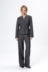 Костюм-двойка из приталенного жакета со съемным шарфиком и широких прямых брюк.