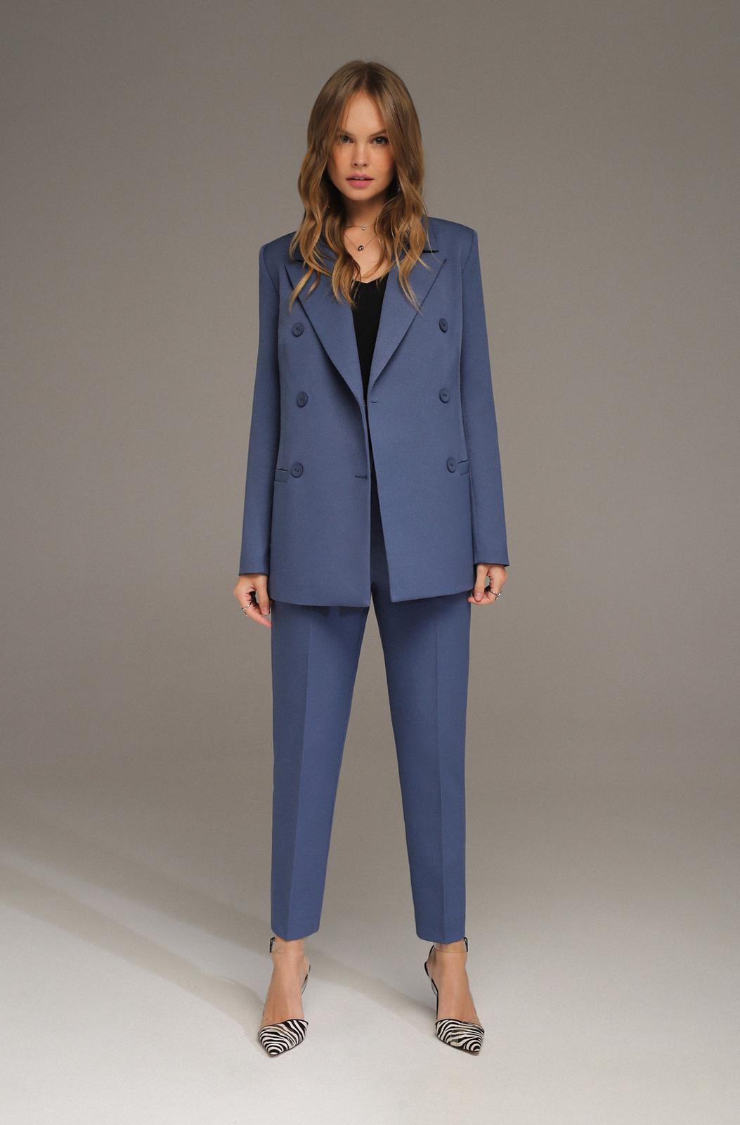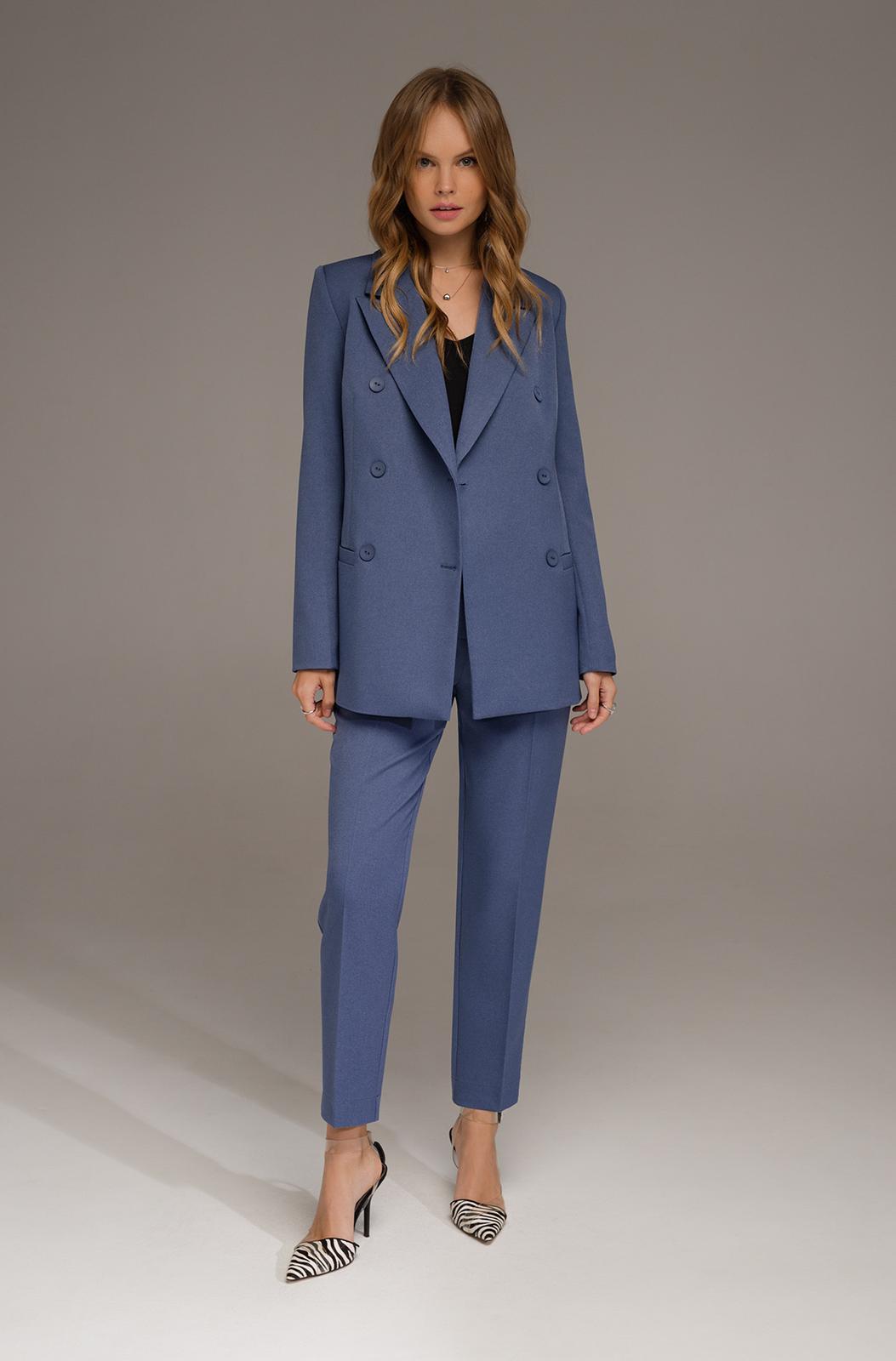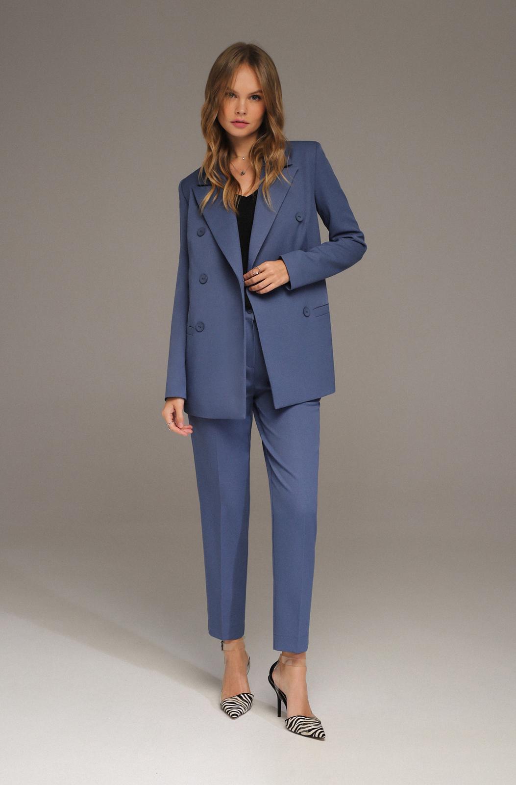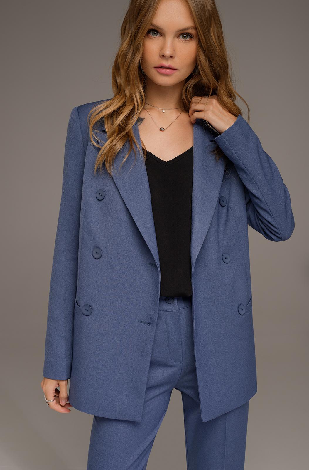 Текстильный классический жакет прямого кроя. Детали: жакет полуприлегающего силуэта, пиджачный воротник, перед с прорезными карманами, двубортная застежка на петли и пуговицы, спинка со средним швом, рукава втачные двухшовные, жакет на подкладке