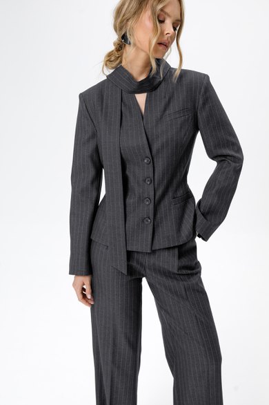 Приталенный жакет со съемным шарфиком.