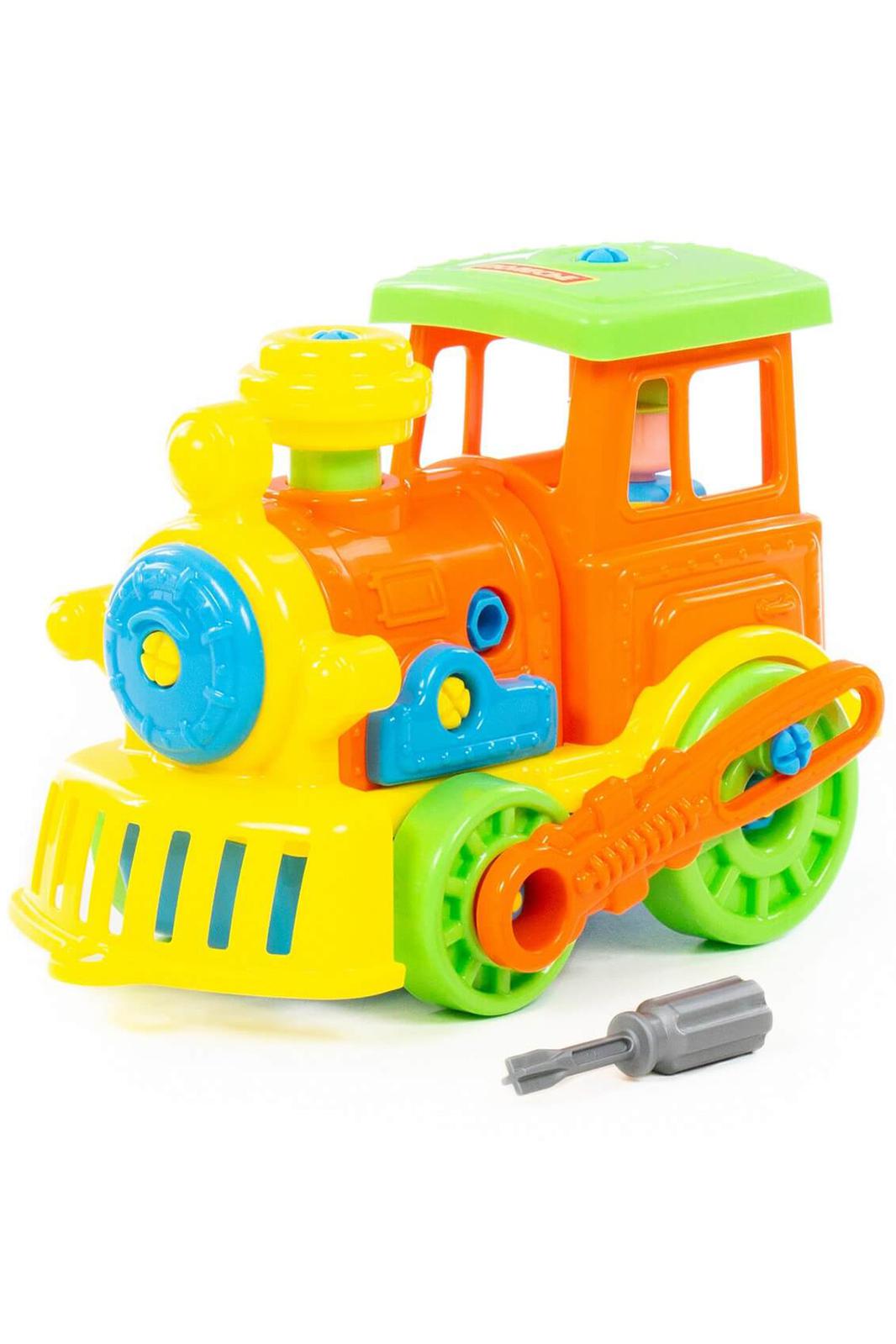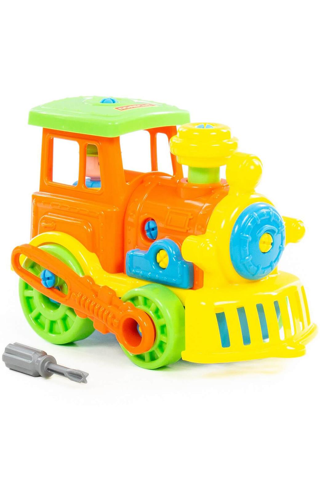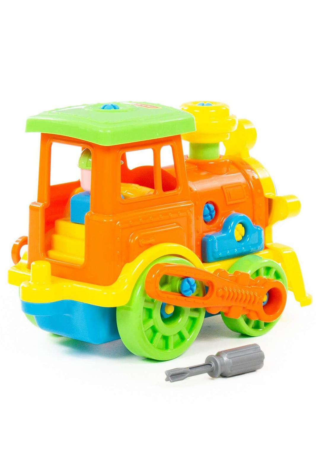 Для самых любопытных малышей, которые хотят поближе познакомиться с разными видами транспорта, фабрика «Полесье» представляет конструктор-транспорт Паровоз. Игрушка выполнена в ярких цветах, из качественного материала, имеет округлую форму. Все элементы паровоза представлены в виде конструктора, который соединяется с помощью пластмассовых шурупов. В наборе также идёт крестообразная отвёртка, которая разнообразит игру, сделает её еще интереснее, позволяя без труда разбирать и собирать паровоз. Игра с таким конструктором знакомит ребёнка с первыми навыками моделирования и конструирования, а также развивает фантазию.
