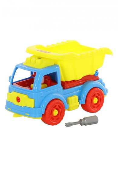 Для самых любопытных малышей, которые хотят поближе познакомиться с разными видами транспорта фабрика «Полесье» представляет конструктор-транспорт Автомобиль-самосвал. Игрушка выполнена в ярких цветах, из качественного материала, имеет округлую форму. Все элементы самосвала представлены в виде конструктора, который соединяется с помощью пластмассовых шурупов. В наборе также идёт крестообразная отвёртка, которая разнообразит игру, сделает её ещё интереснее, позволяя без труда разбирать и собирать самосвал. Игра с таким конструктором знакомит ребёнка с первыми навыками моделирования и конструирования, а также развивает фантазию.