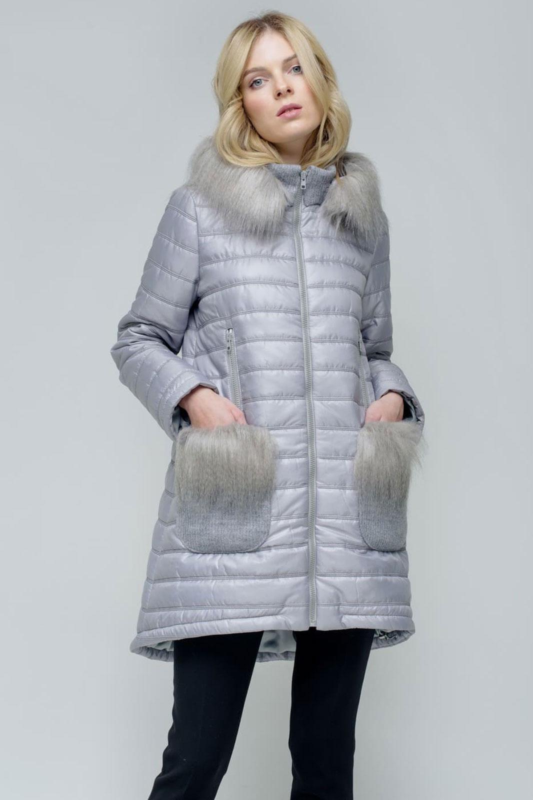 Стильное пальто О-силуэта, выполнено из стёганного болония , воротник из трикотажного полотна, с капюшоном из искусственного меха . Спереди накладные карманы из искуственного меха. На подкладке.