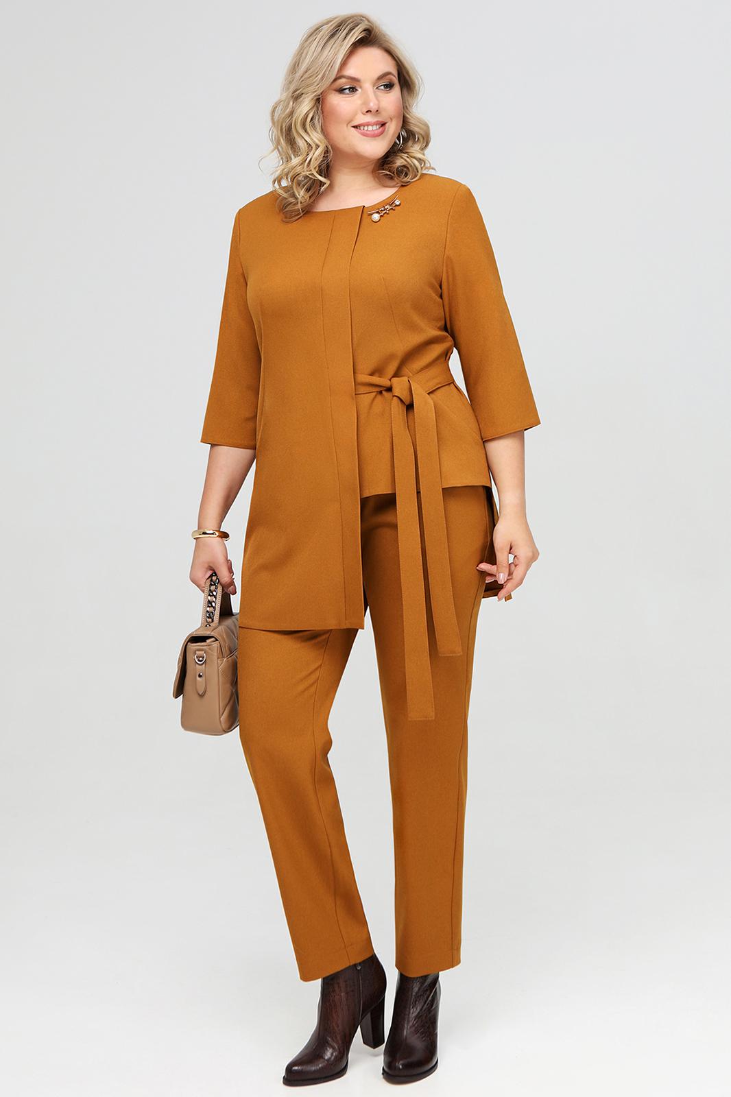 Женский брючный комплект, состоящий из удлиненной туники и брюк классического силуэта. Комплект выполнен из ткани костюмно-плательного ассортимента.