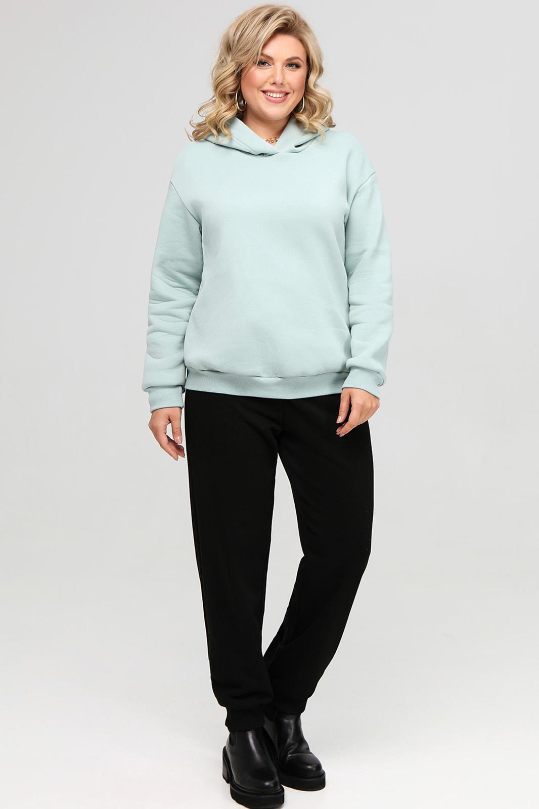 Женский прогулочный костюм, состоящий из джоггеров и худи. Выполнен костюм из мягкого уютного трикотажа. Худи свободного кроя, с притачным поясом из кашкорсе по низу. Рукав втачной, со спущенной линией плеча. По низу рукава есть притачная манжета из кашкорсе. Длина изделия по спинке 71 см. Длина рукава 63 см.