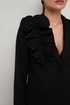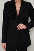 полуприлегающего силуэта с центральной застежкой на петли и обтяжные пуговицы. Воротник пиджачного типа с отложными