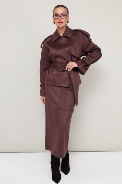 Стильный 2-предметный комплект, состоящий из жакета и юбки, выполненный из экозамши.