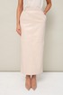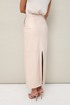 Юбка на подкладке в длине миди с боковыми наклонными карманами. Притачной пояс с застежкой в среднем шве на потайную молнию. Для удобства движения сзади обработана шлица.