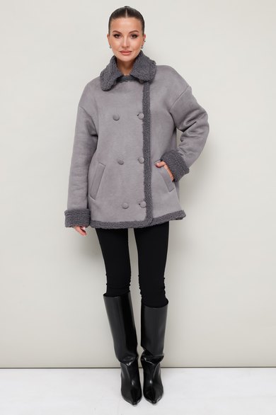 Женская дубленка прямого силуэта, длиной до середины бедра. Воротник и лацканы отложные. Застёжка двубортная на петли и обтяжные пуговицы. Спереди обработаны функциональные карманы с листочкой. Спущенная линия втачивая плеча, длинные двухшовные рукава с отворотом. Спинка с отрезной кокеткой. Дубленка декорирована искусственным мехом, который придает образу благородную мягкость и уют.