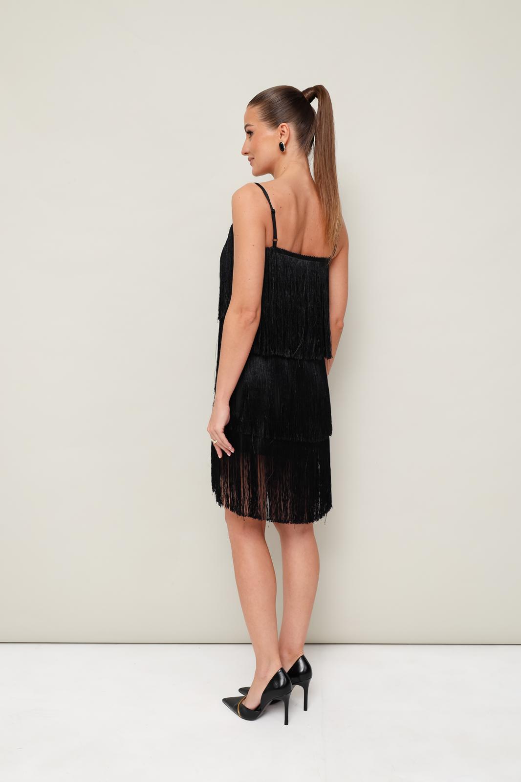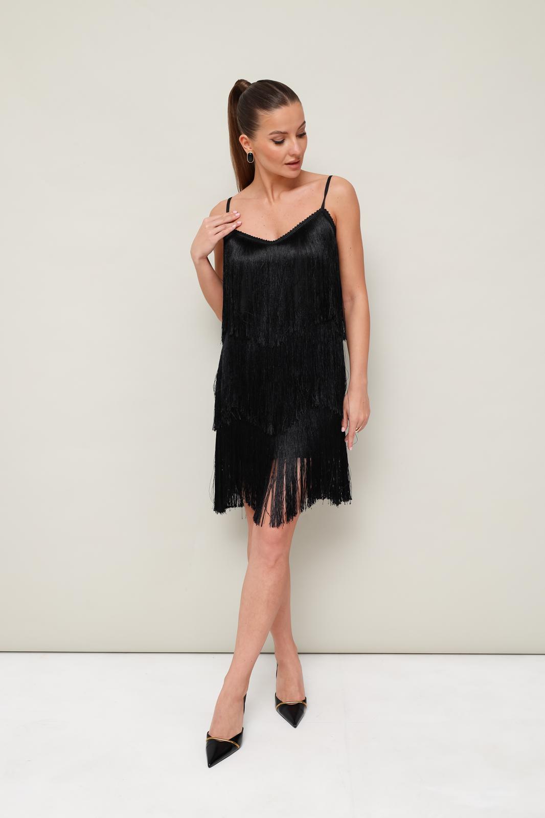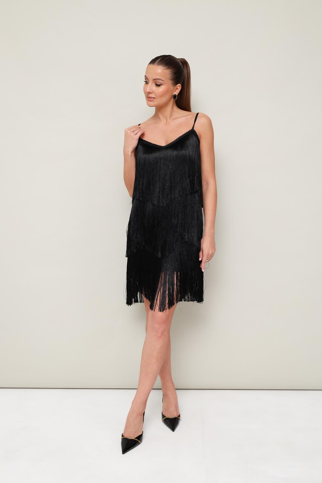 Нарядное платье, декорированное отделочное бахромой. Бахрома пришивная, ниточки не вылазят.