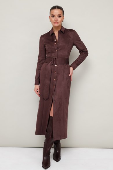 Силуэтное платье в длине миди, выполнено из экозамши.
