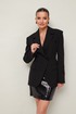 Мини-юбка со слегка расширенным к низу силуэтом, выполнена из трикотажного полотна с блестящими зеркальными пайетками. Застежка на потайную молнию в среднем шве заднего полотнища юбки. Для удобства движения сзади обработан разрез. Юбка на подкладке.
