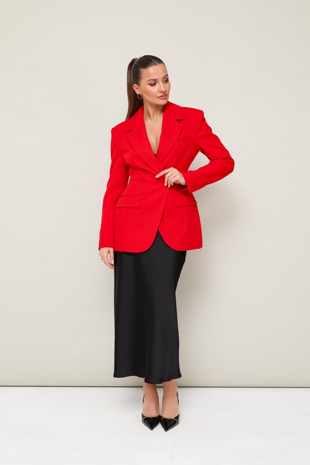 Юбка с кроем «по косой» в длине миди, пояс на обтачке, застежка в боковом шве на потайную тесьму молнию.