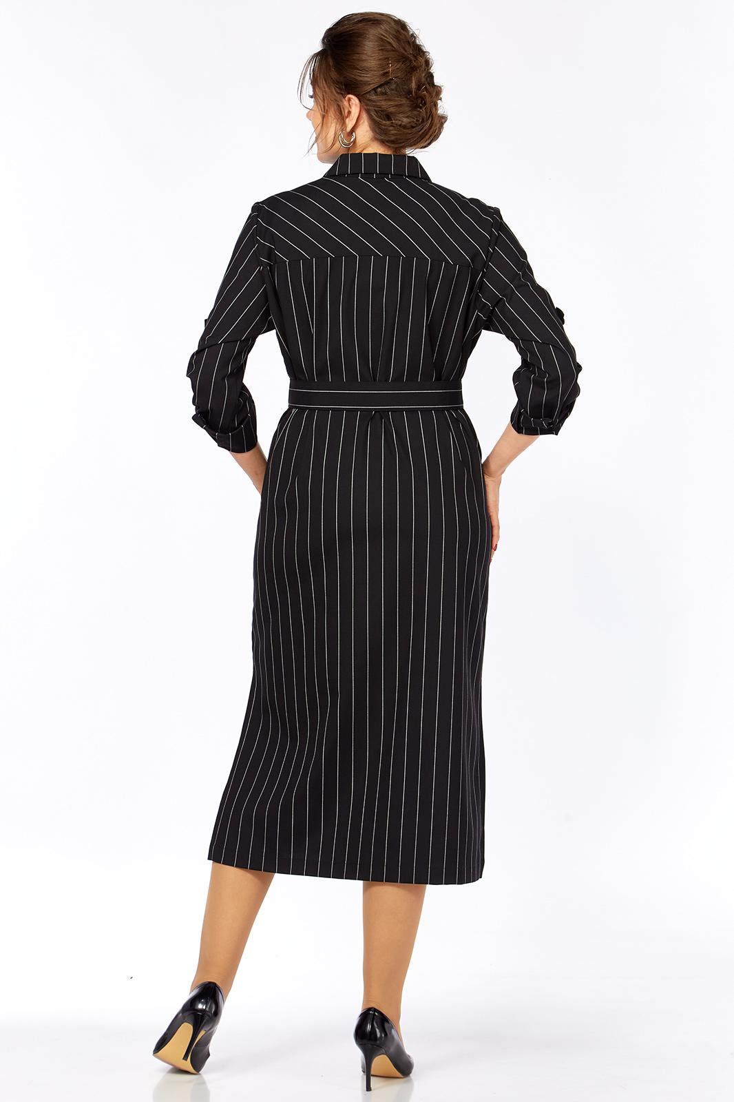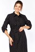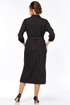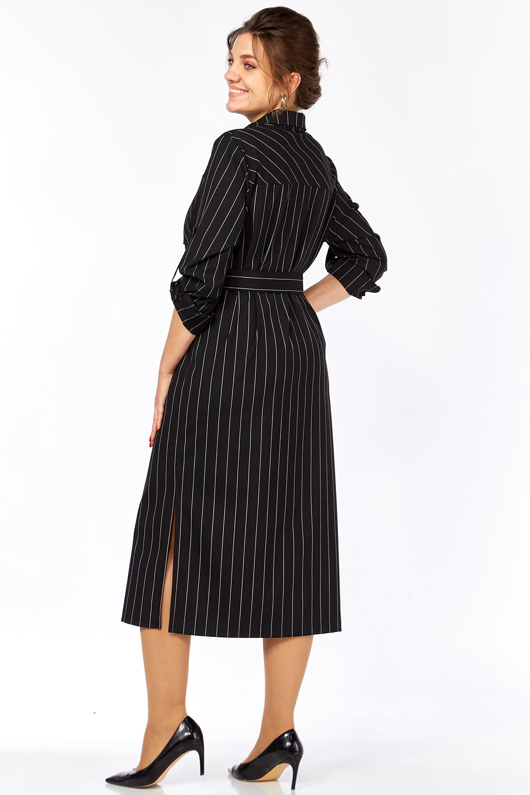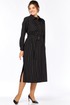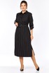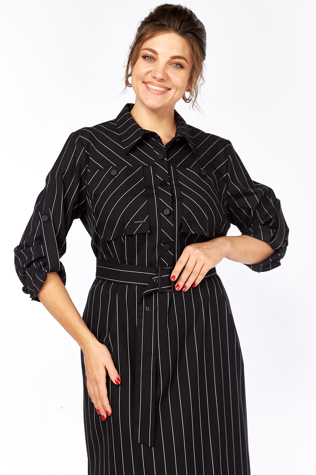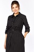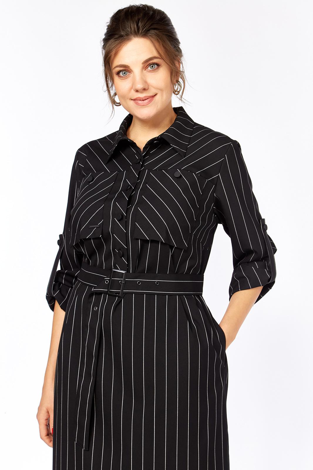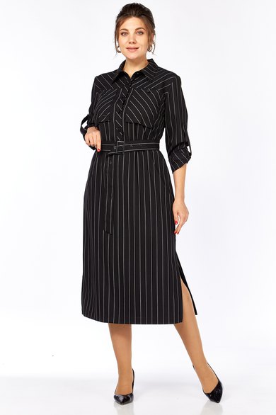 Модное платье-рубашка из плательно-костюмной ткани в изысканную полоску — идеальное сочетание шика и современности. Универсальная длина и разрезы по боковым швам придают образу лёгкость и динамику, а пояс выгодно подчёркивает линию талии, создавая женственный силуэт.