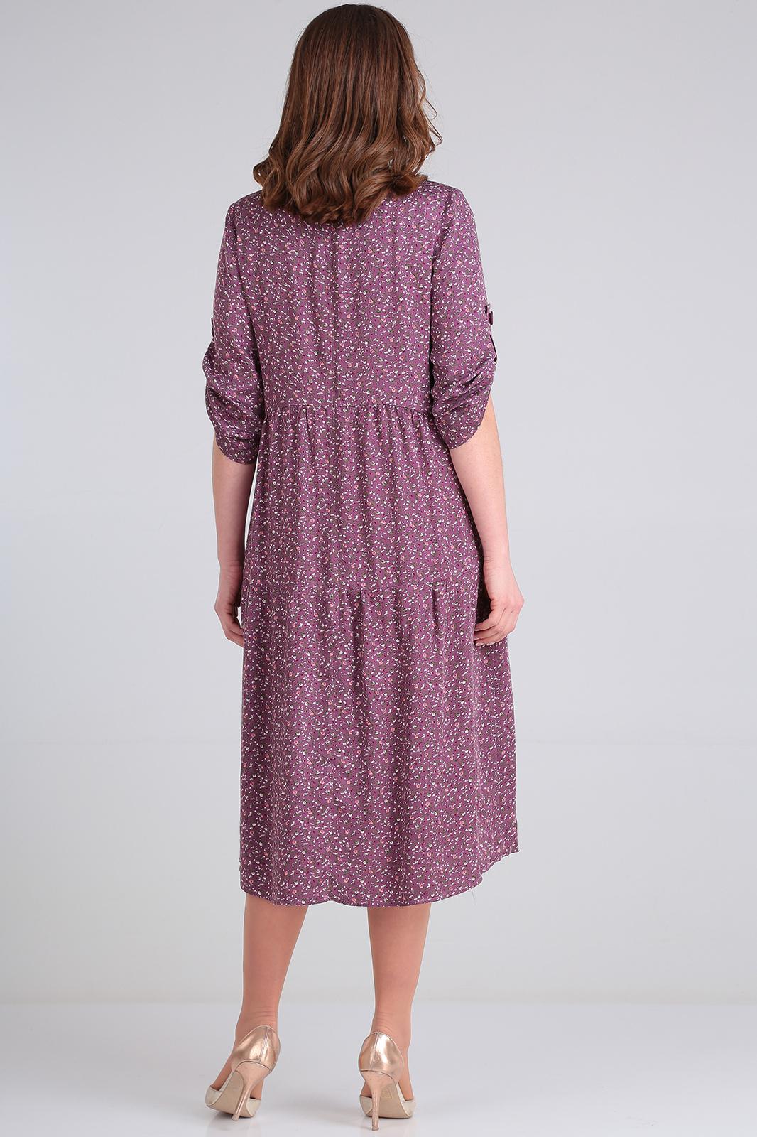 Платье свободного силуэта, лиф с нагрудными выточками. В рельефе среднего волана переда потайные карманы . Спинка со среднем швом и потайной молнией. Рукав одношовный, втачной, 3/4 с застегивающийся патой на пуговицу. Горловина округлая