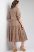 Перед лифа с нагрудными выточкками. Спинка лифа со средним швом. Горловина округлая с втачным воротником на молнии и декоративными складками, которые придают воротнику дополнительный объем. Юбка платья состоит из трех воланов их хлопковой ткани. Рукав одношовный втачной 3/4, застегивающийся на пату.Перед дополняет декоративный отлетной карман.