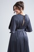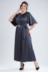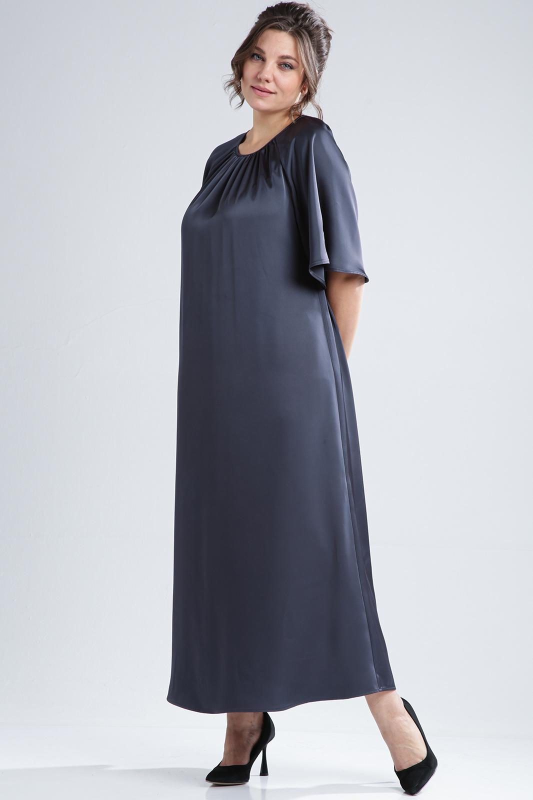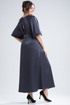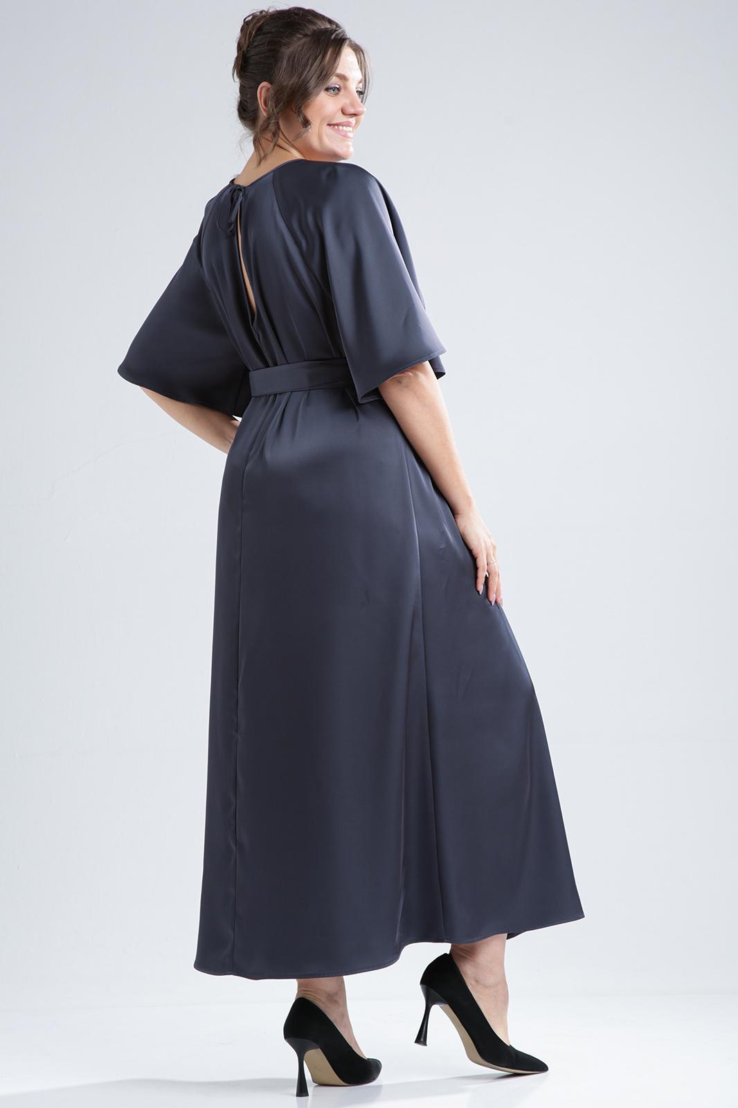 Сочетание элегантности и изысканности. Минималистичное по крою платье длины макси из двустороннего сатина. Вырез горловины округлый, спереди на сборке. Рукав реглан, расширенный к низу. Спинка со средним швом и углубленным разрезом сверху. Линия талии дополнительно подчёркивается поясом с декоративной фурнитурой.