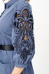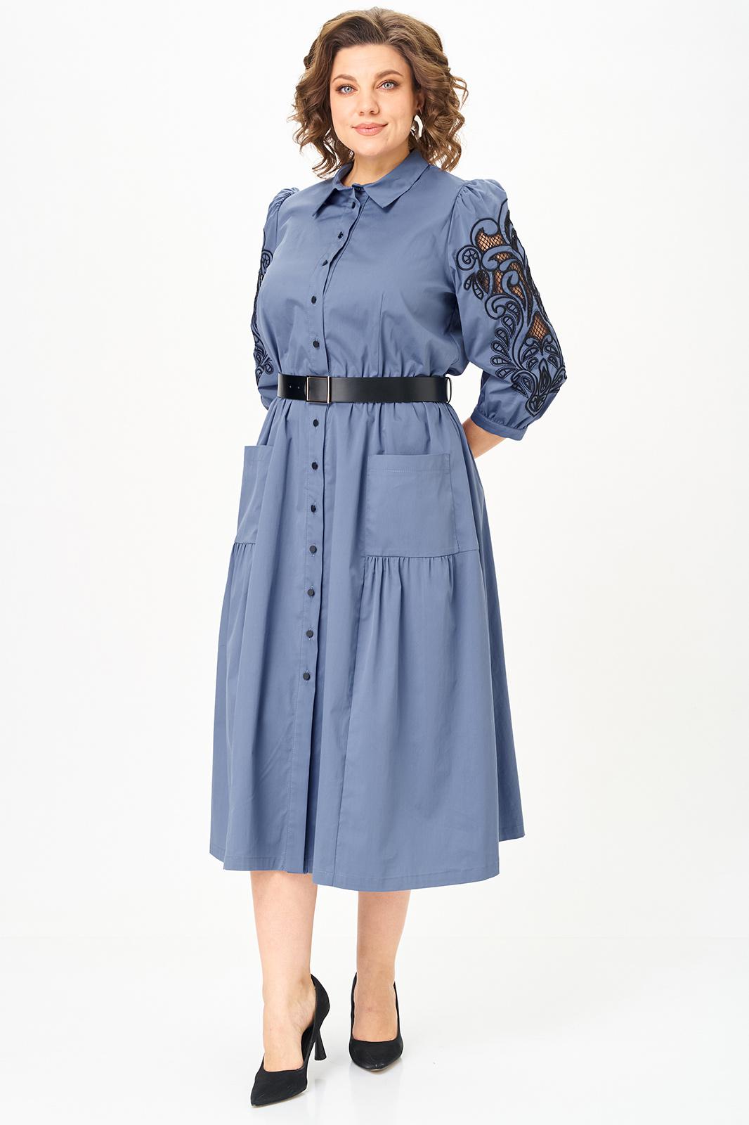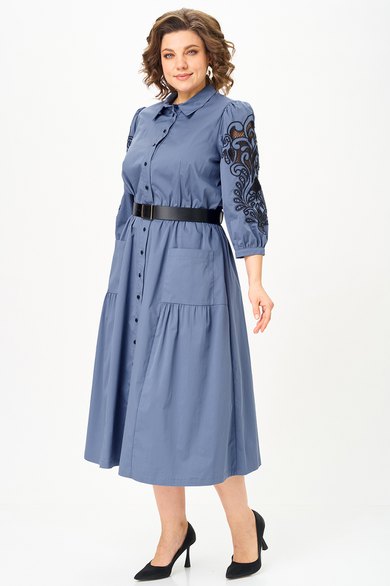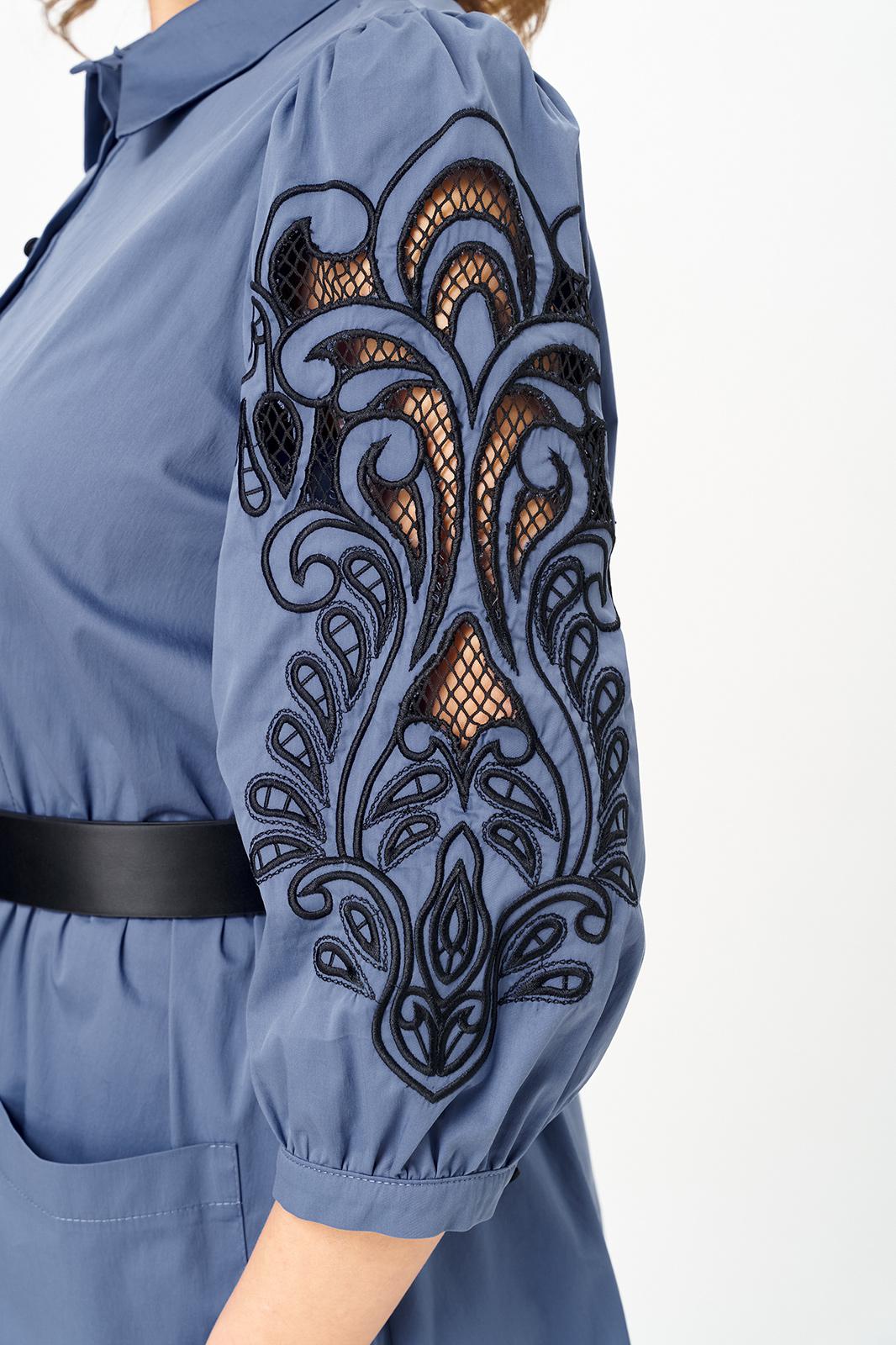 Представленное платье — это не просто одежда, а произведение искусства, сочетающее в себе дизайнерское вдохновение и современный стиль! Платье расширенного силуэта, отрезное по линии талии. Лиф с нагрудными вытачками, юбка впереди с подрезом и накладными карманами. Перед с центральной застежкой на петли-пуговицы. Воротник на стойке. В боковых швах расположены функциональные карманы. Рукав одношовный, втачной с манжетой. Выполнена необычная изящная вышивка на рукавах, что придает уникальность и завершенность, а съемный пояс акцентирует внимание на талии. Это стильное и легкое платье идеально сочетает в себе элегантность и комфорт. Благодаря продуманному крою и длине ниже колена, оно подойдет как повседневное офисное платье для работы, так и в качестве нарядного вечернего наряда в весенне-летний период. Такое платье станет любимым элементом гардероба, добавляя каждому образу нотки шарма и утонченности.