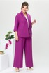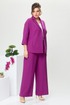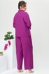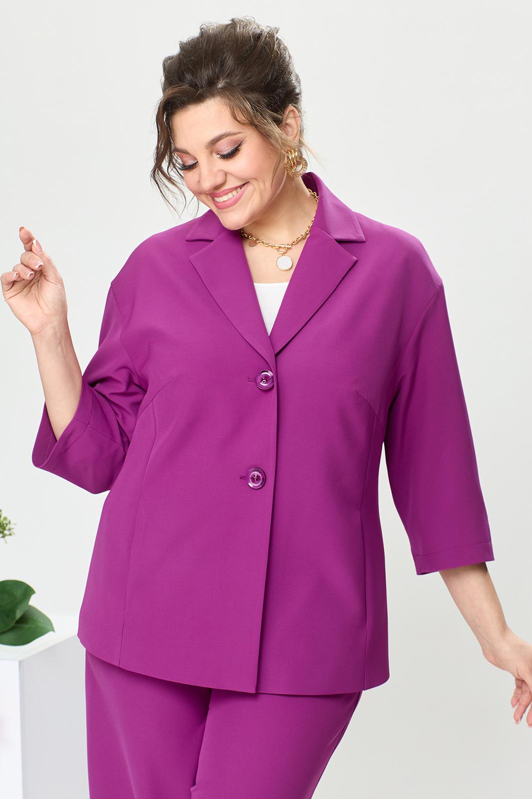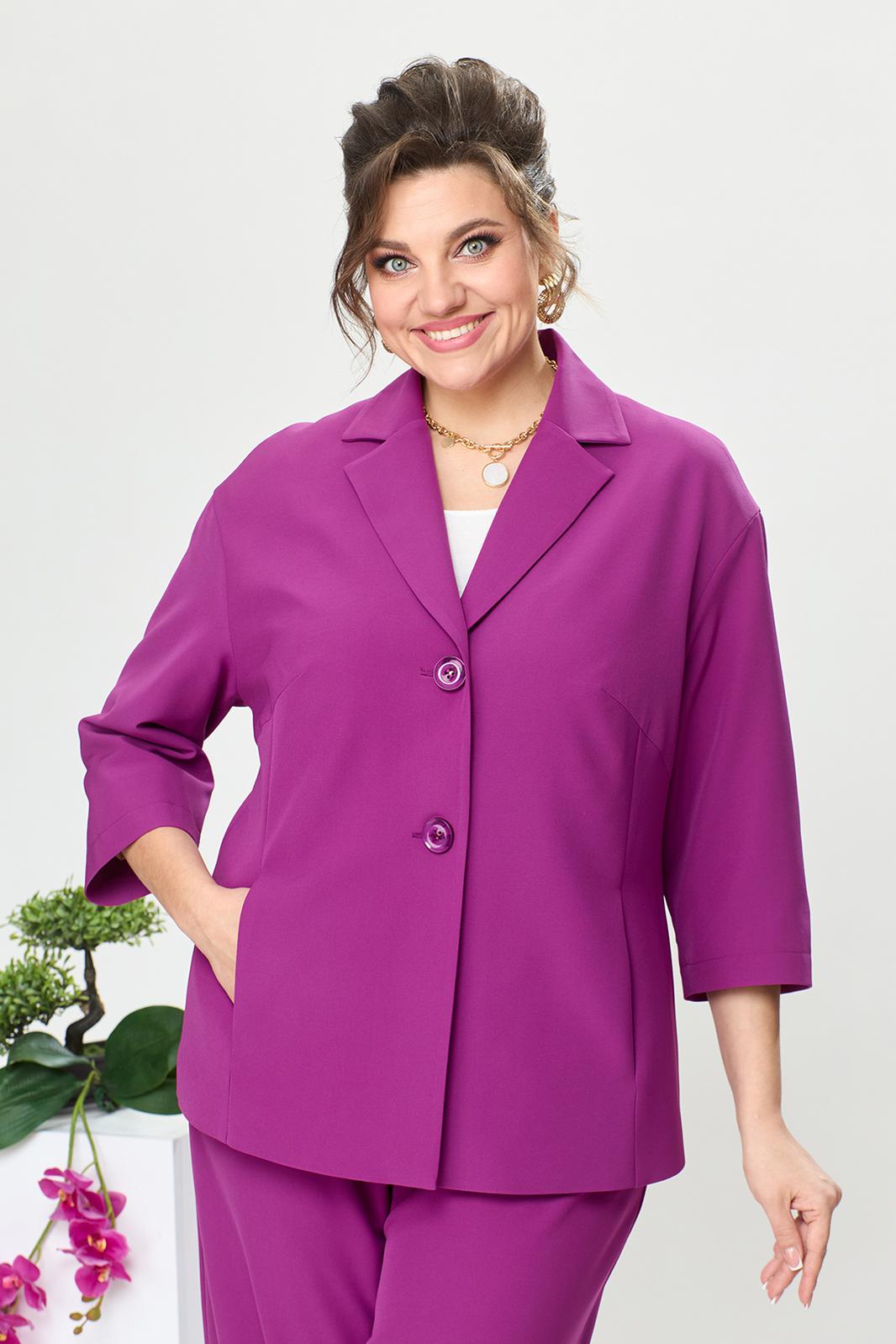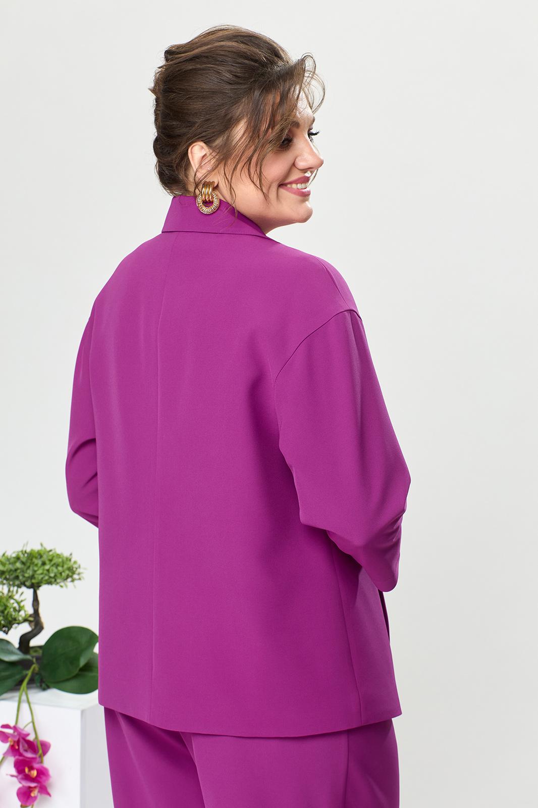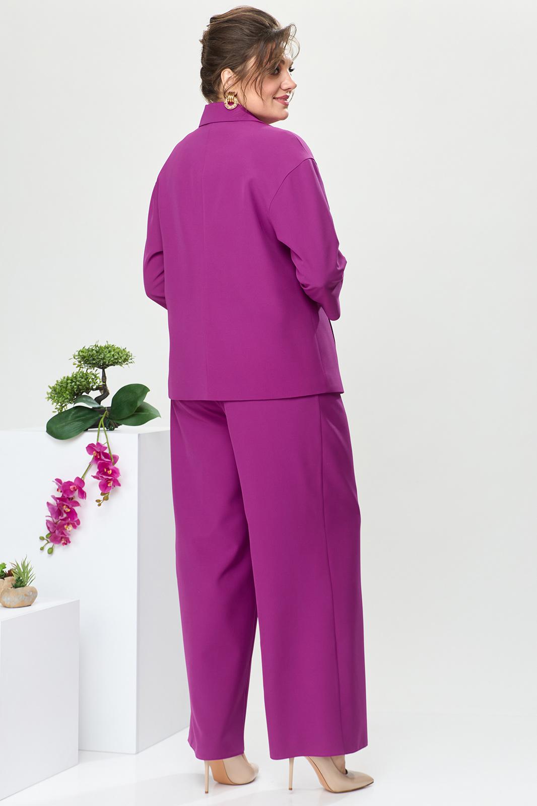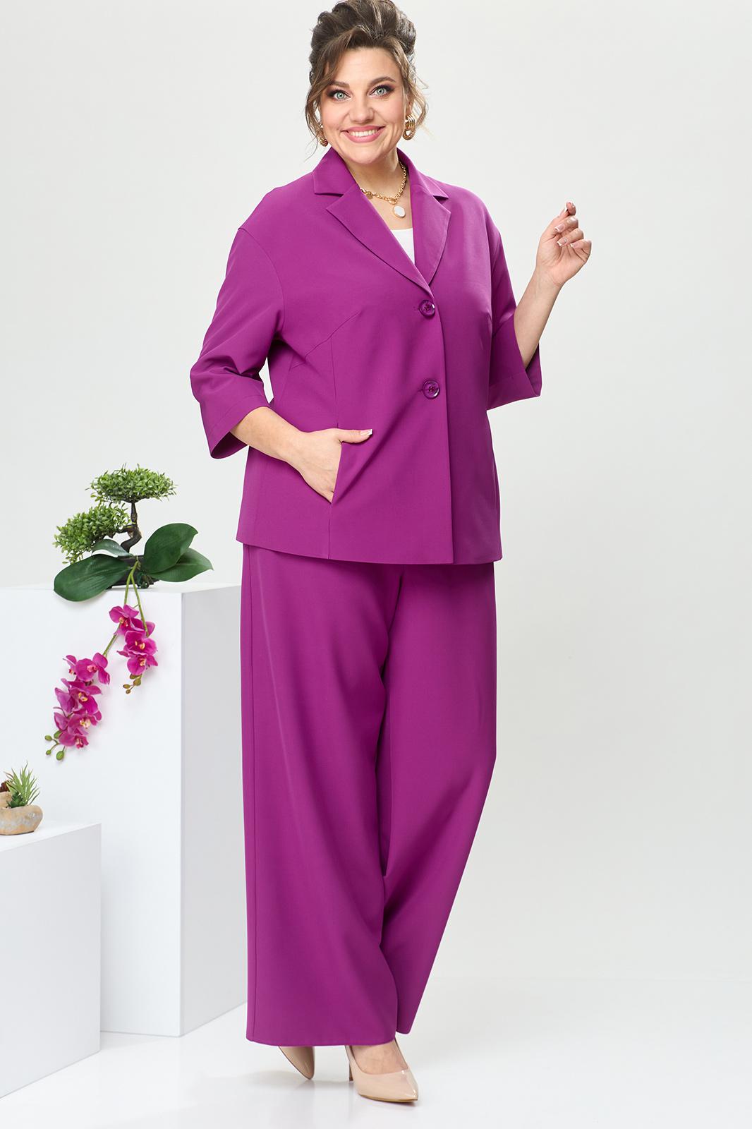 Костюм женский, предназначен для повседневной носки. Костюм женский2-х предметный жакет и брюки. Жакет женский прямого силуэта. Перед с 2-мя нагрудными вытачками с 2-мя отрезными бочками, в швах соединения бочков к переду обработаны карманы. Спинка со средним швом. Горловина с V-образным вырезом с втачным воротником пиджачного типа с отложным лацканом. Застёжка центральная бортовая на 2-е обмётанные петли и 2-е пришивные пуговицы. Жакет со спущенным плечом. Рукав втачной, одно шовный, Жакет на притачной подкладке. Жакет без плечевых накладок. Брюки женские прямые, длинные. Передние половинки без конструктивных особенностей. Задние половинки с таллиевыми вытачками. Брюки с притачным поясом, собранным на эластичную тесьму, закреплённую 2-мя отделочными строчками. Длина спинки жакета 66 см, длина рукава 40 см. Длина брюк по боковому срезу 103 см.