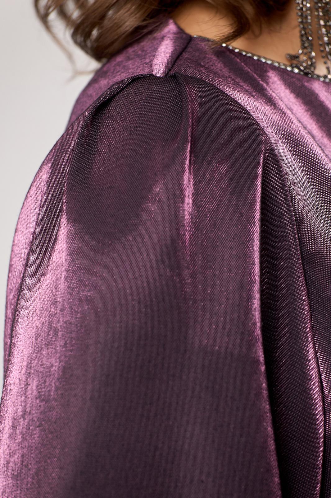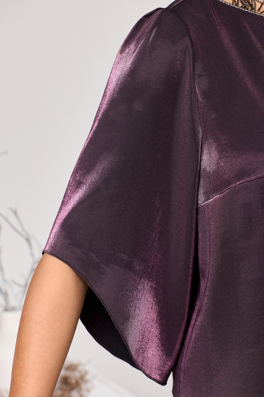 Костюм женский относится к нарядной торжественной одежде. Костюм женский 2-х предметный блузон и юбка. Блузон женский прямого силуэта с фигурным низом. Перед с 2-мя нагрудными вытачками. Спинка цельнокроеная. Горловина обточная, с фигурным вырезом лодочка без воротника, по переду горловина декорирована отделочной втачной тесьмой. Рукав втачной, прямой, одно шовный, длиной 3/4 с фигурным низом, окат рукава со встречной складкой. Блузон без плечевых накладок. Юбка женская прямая, длиной до нижней части икры. Переднее полотнище цельнокроеное. Заднее полотнище с 2-м я таллиевыми вытачками. Юбка с притачным поясом, собранным на эластичную тесьму Юбка на подкладке. Длина юбки по боковому срез 87 см. Длина спинки блузона 67 см, длина рукава 34 см.