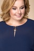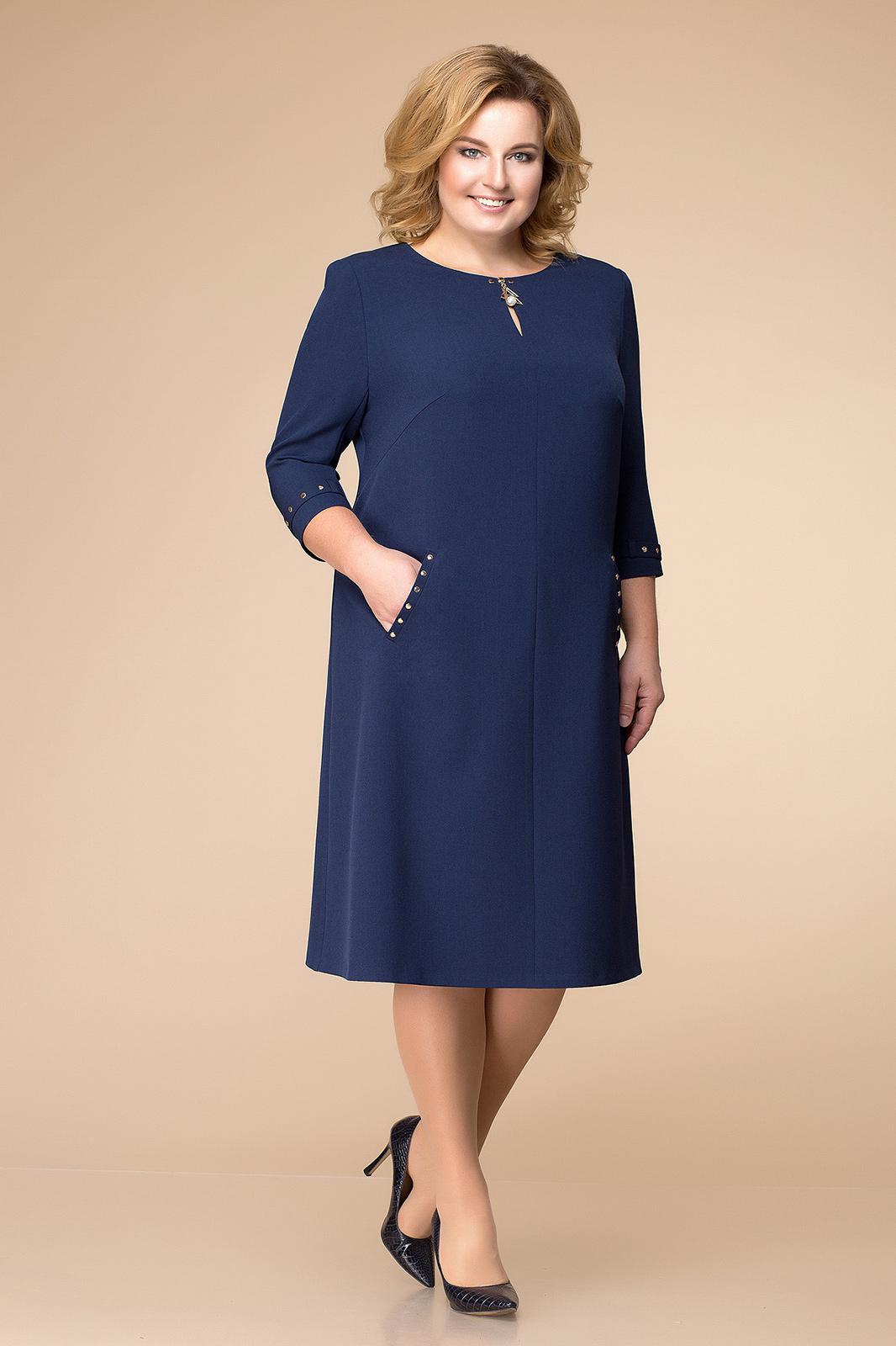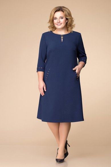 Платье женское расширенное книзу, длиной за колено, предназначено для повседневной носки. Перед с двумя нагрудными вытачками, с двумя прорезными карманами с листочками, с втачными концами на уровне линии бедер, со средним швом, вверху с разрезом, фиксирующимся пришивным украшением с двумя пробивными хольнитенами. Спинка со средним швом. Застежка на потайную тесьму-молнию в среднем шве спинки. Горловина круглая, обтачная, без воротника. Рукав втачной, двух шовный, длиной 3/4. Внизу верхнего рукава пата, фиксирующаяся в две настрочные шлевки. Пата с шестью пробивными хольнитенами. Платье с плечевыми накладками. Длина спинки 101 см. Длина рукава 46.5 см