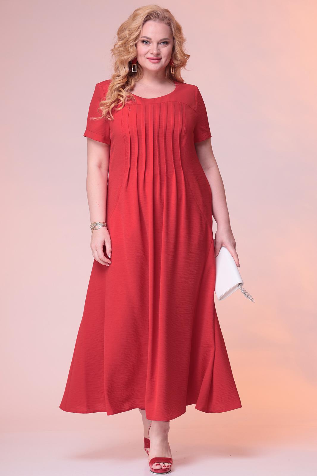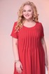 Платье женское предназначено для повседневной носки. Платье женское расширенное к низу, длинное. Перед с отрезной кокеткой, с двумя отрезными бочками, с двумя конструктивными подрезами внизу. Центральная часть переда с 8-ю декоративными складками. В швах соединения бочков с центральной частью переда обработаны карманы. Спинка со средним швом, с двумя декоративными конструктивными подрезами внизу от боковых швов. Горловина круглая, обтачная, без воротника. Рукав втачной, короткий, одношовный. Ширина складки переда 1,5 см. Платье с плечевыми накладками. Длина спинки 133 см. Длина рукава 22 см.