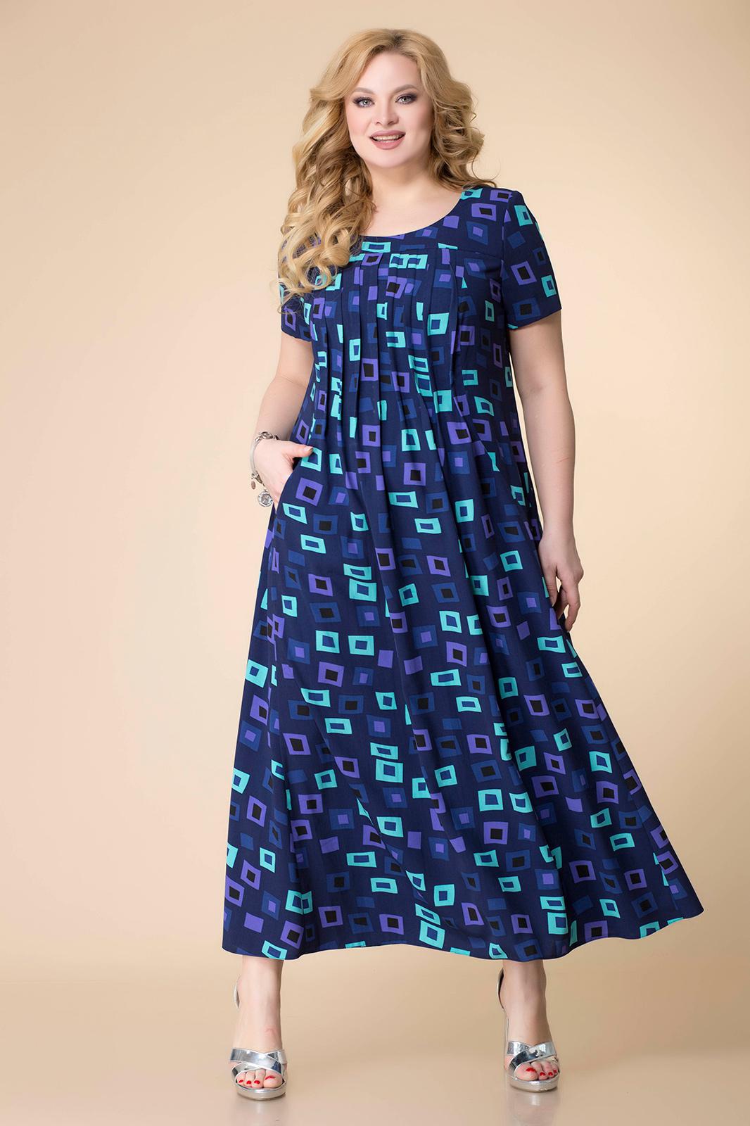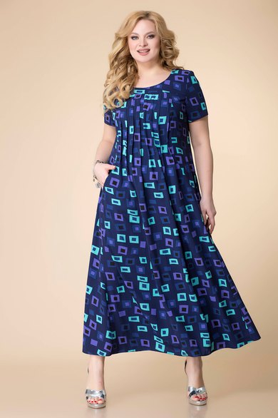 Платье женское предназначено для повседневной носки. Платье женское расширенное к низу, длинное. Перед с отрезной кокеткой, с двумя отрезными бочками, с двумя конструктивными подрезами внизу. Центральная часть переда с 8-ю декоративными складками. В швах соединения бочков с центральной частью переда обработаны карманы. Спинка со средним швом, с двумя декоративными конструктивными подрезами внизу от боковых швов. Горловина круглая, обтачная, без воротника. Рукав втачной, короткий, одно шовный. Ширина складки переда 1,5 см. Платье с плечевыми накладками. Длина спинки 133 см. Длина рукава 22 см