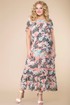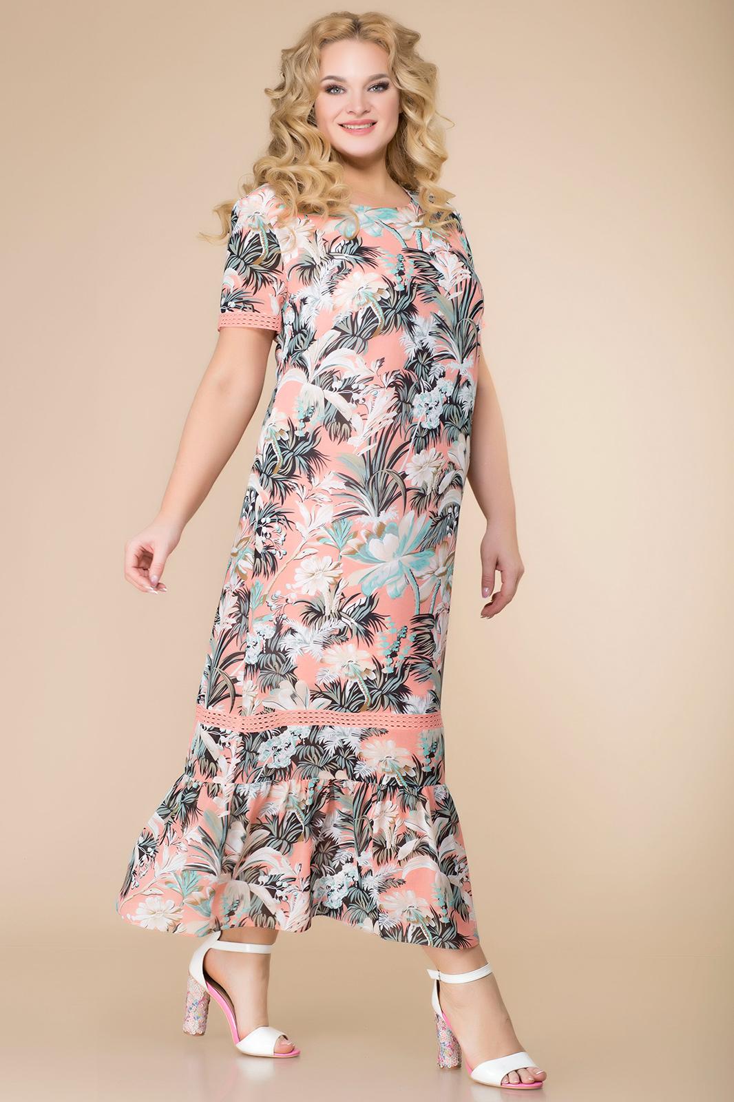Платье женское предназначено для повседневной носки. Платье прямого силуэта. Перед с двумя нагрудными вытачками. Низ переда и спинки с горизонтальным подрезом, декорированным настрочным кружевом. Платье внизу с притачным воланом, верхний срез с легкой сборкой. Горловина круглая, обтачная, без воротника. Рукав втачной, короткий, одно шовный, низ декорирован настрочным кружевом. Платье на подкладке, с плечевыми накладками. Длина спинки 132см. Длина рукава 25см