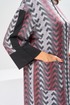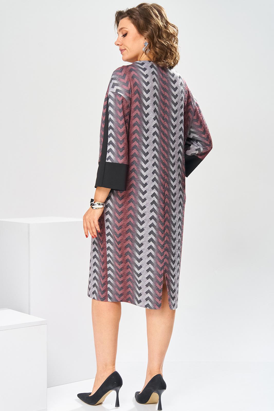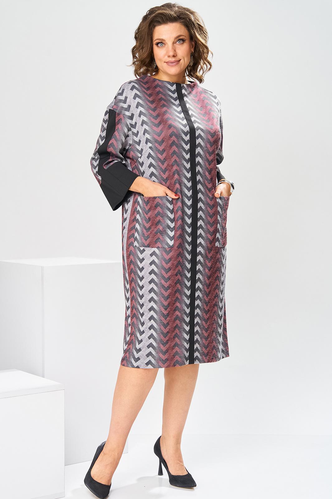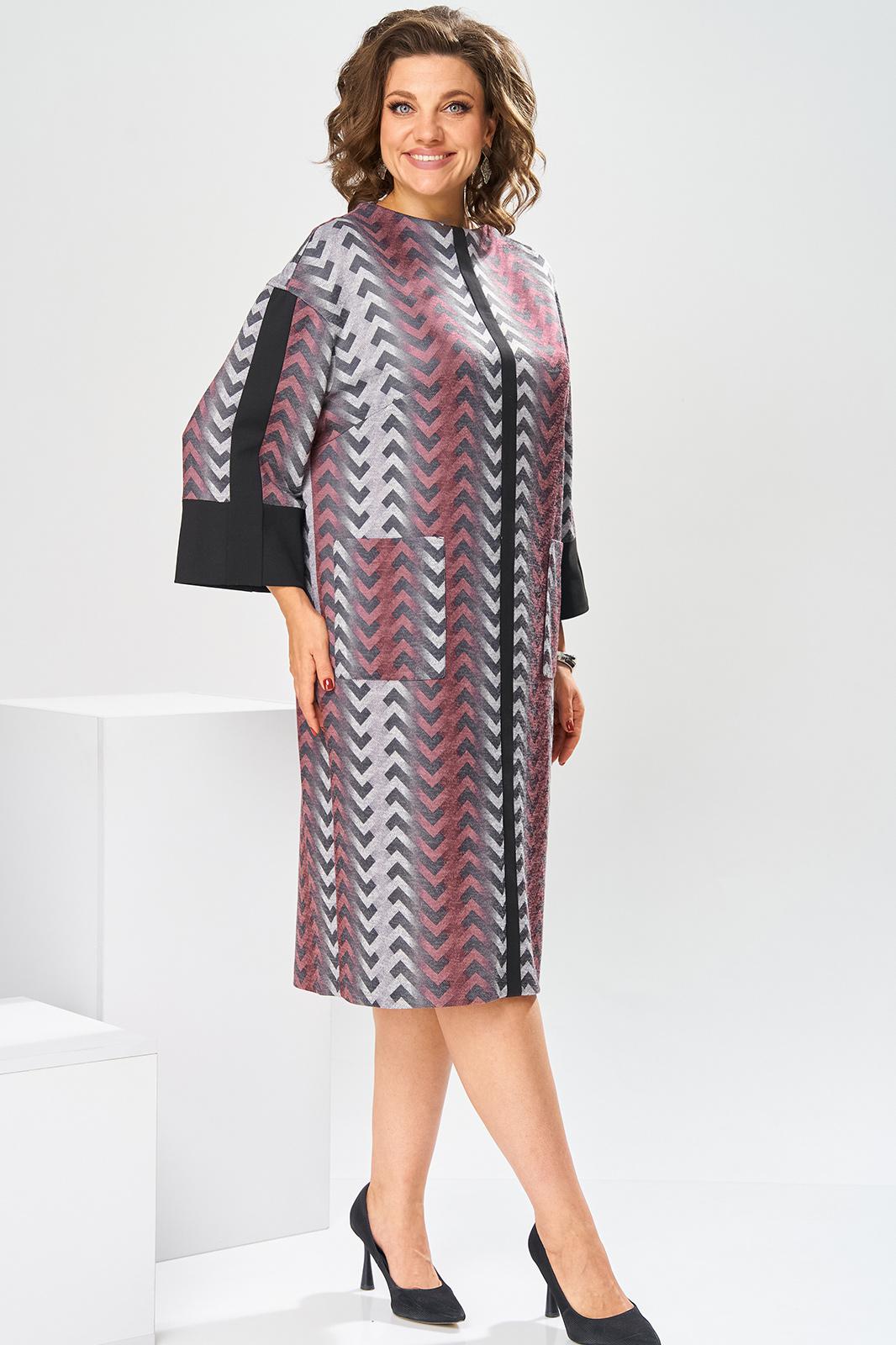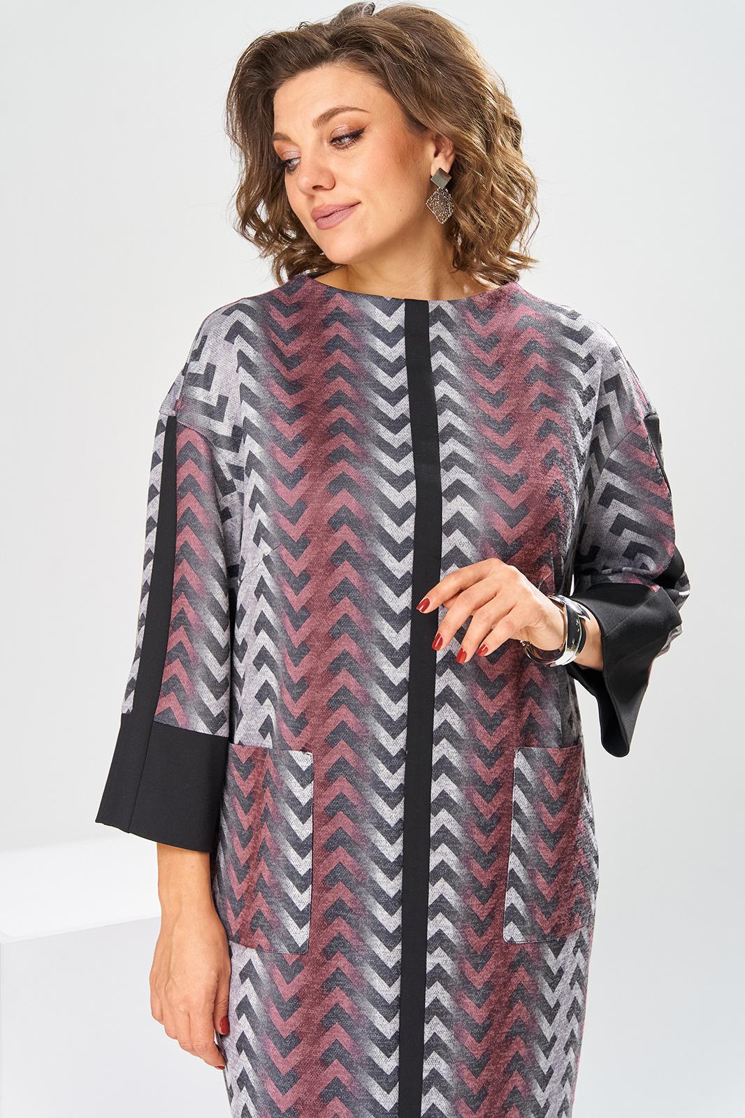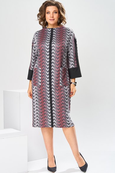 Платье женское для повседневной носки. Платье женское полу прилегающего силуэта, длиной за колено. Перед с 2-мянагрудными выточками, с 2-мя накладными прямоугольными карманами, на уровне линии бёдер, с приточной вертикальной планкой из отделочной ткани. Спинка со средним швом, заканчивающимся разрезом. Застёжка на потайную тесьму-молнию в среднем шве спинки. Горловина с цельнокроеной стойкой, обточная. Платье со спущенным плечом. Рукав втачной, длиной 7/8 с приточной манжетой из отделочной ткани и приточной вертикальной планкой из отделочной ткани по центру. Платье без плечевых накладок. Длина спинки 107 см, длина рукава от горловины 61 см.