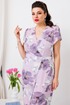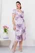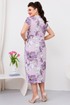 Платье женское, предназначено для повседневной носки. Платье женское полу прилегающего силуэта, длиной до середины икры. Перед с втачным поясом, верхняя часть переда с 2-мя нагрудными вытачками, нижняя часть с запахом. Спинка отрезная по линии талии с втачным поясом, верхняя часть спинки с таллиевыми вытачками. Горловина с V-образным вырезом, с запахом, без воротника. Застёжка на потайную тесьму-молнию в левом боковом шве платья. Рукав короткий одно шовный втачной с фигурным низом, 1-ной встречной складкой по центру оката. Платье без плечевых накладок. Длина спинки 116 см, длина рукава 15,5 см.
